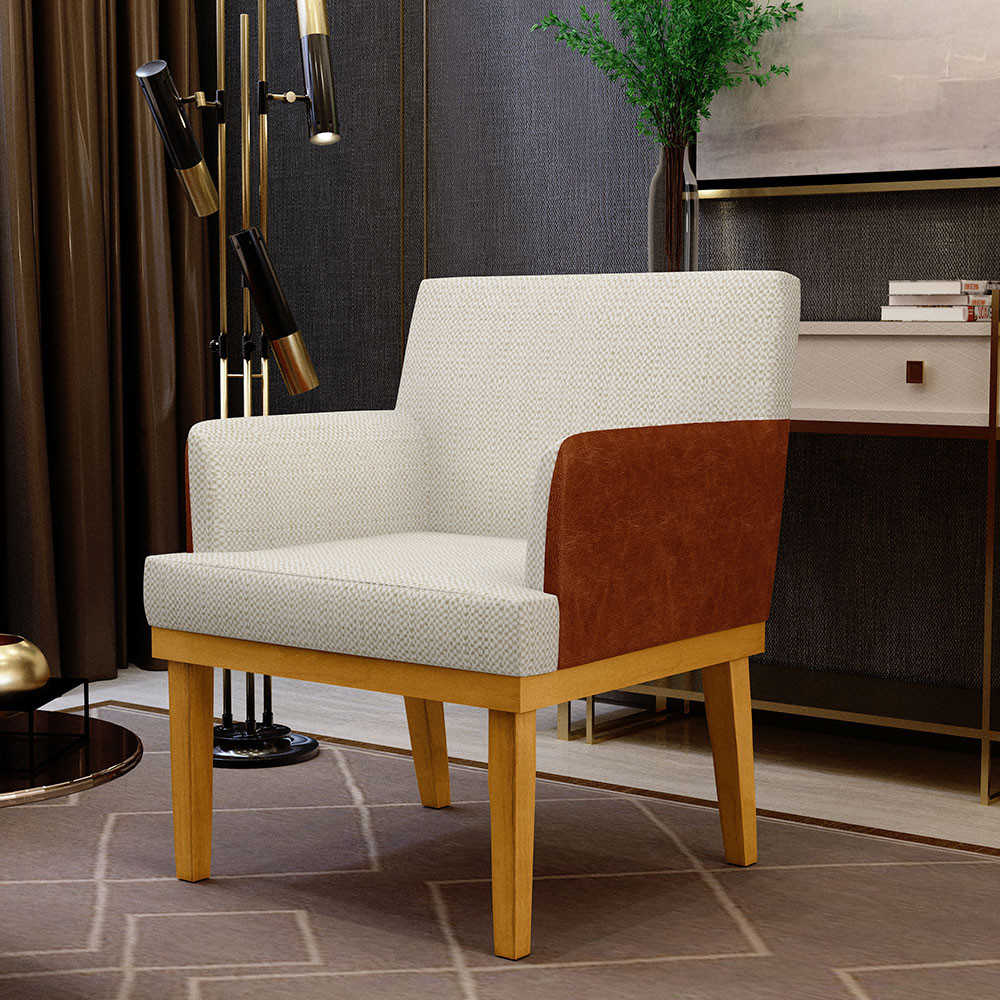Kit 2 Poltronas Decorativas Sala De Estar Beatriz W01 Linho Champagne Couríssimo Camel - Lyam Decor