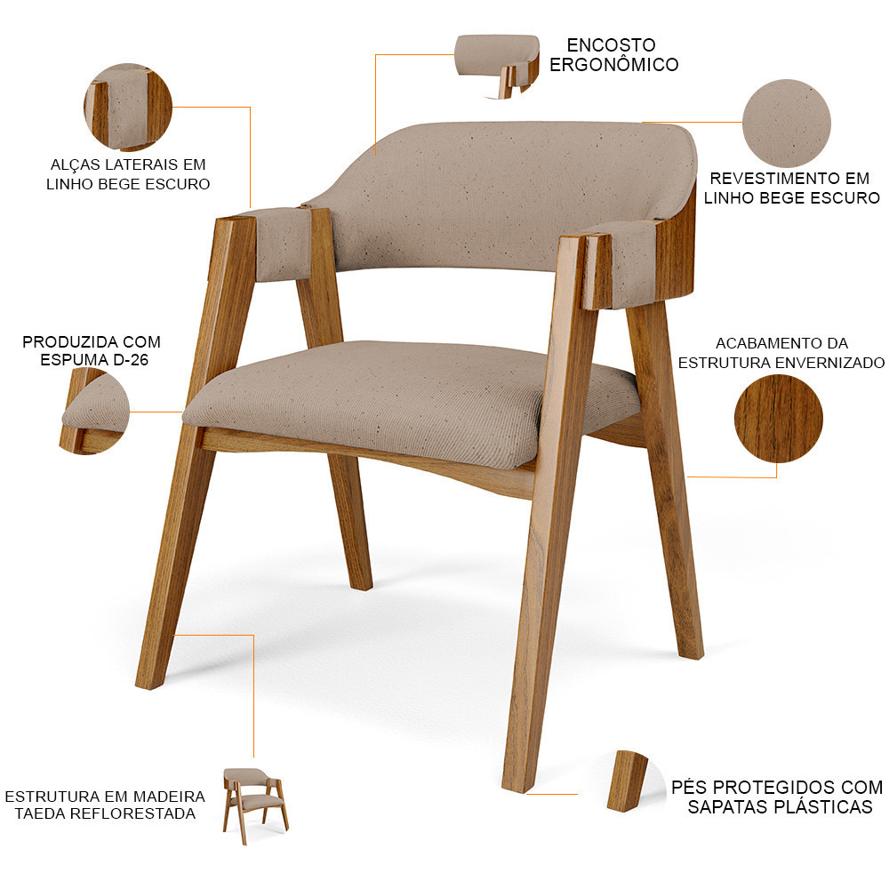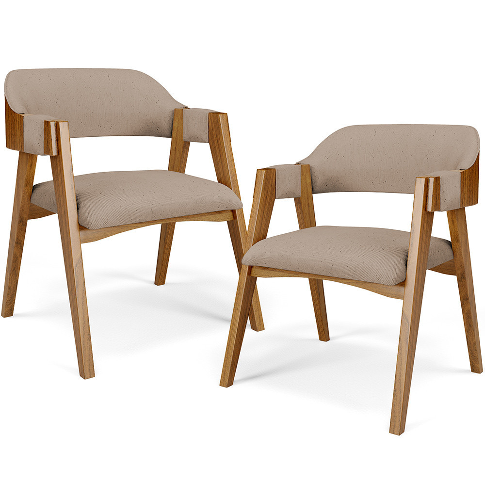 Kit 02 Cadeiras Para Sala de Jantar e Estar Living Estofada Suran L02 Linho Bege Escuro - Lyam