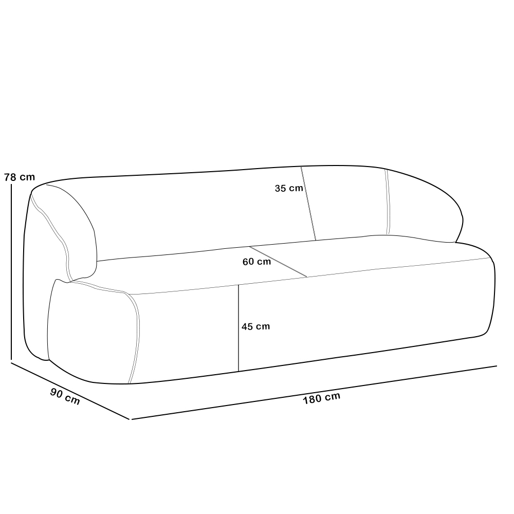 Sofá 3 Lugares Curvo Orgânico Para Sala Living 180cm Barolo L06 Bouclê Off White - Lyam Decor