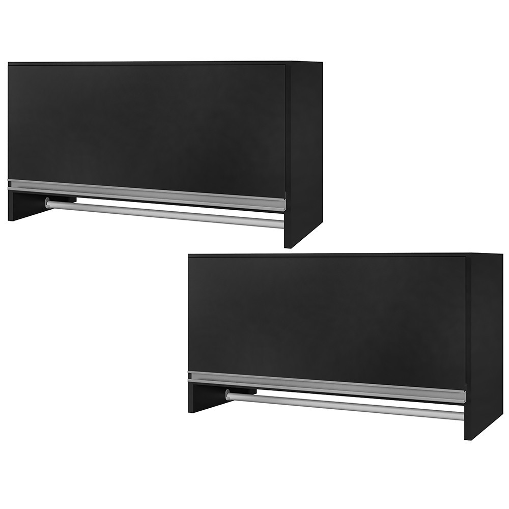 Kit 02 Armários Multiuso Aéreo Cabideiro Grécia L03 Preto - Lyam Decor