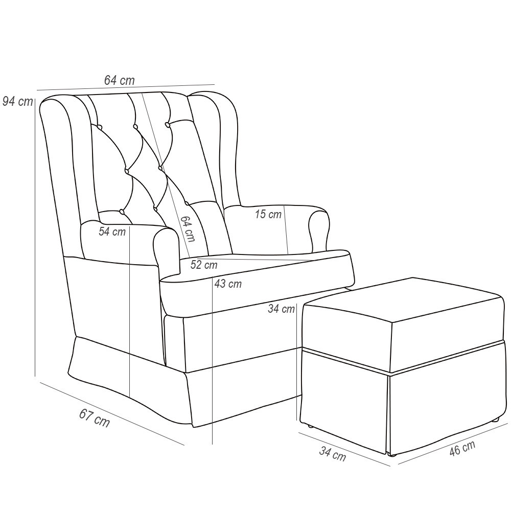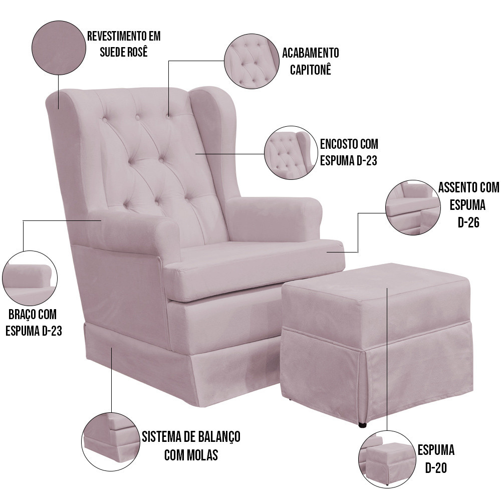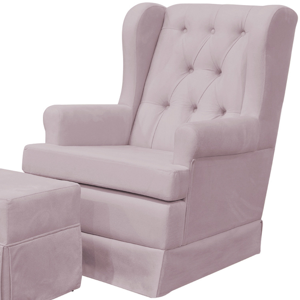 Poltrona de Amamentação com Balanço e Puff Helena P02 Capitonê Suede Rosê - Lyam Decor