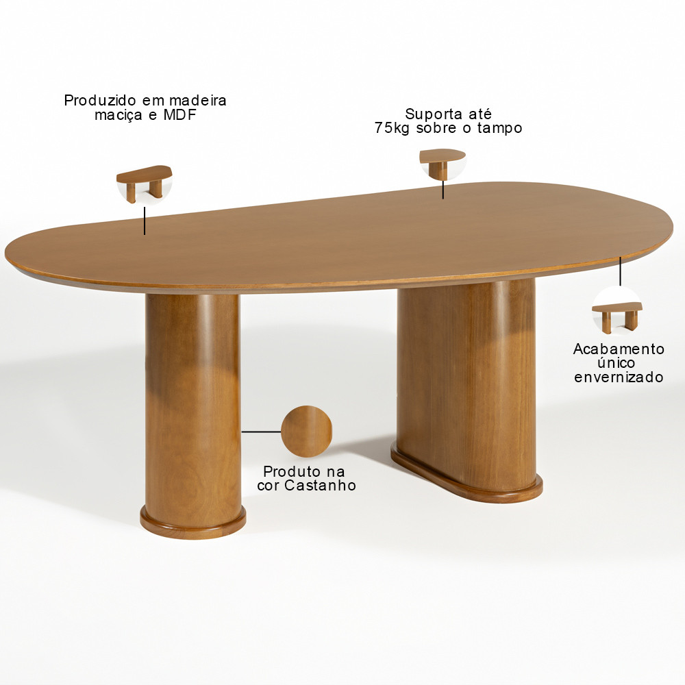 Mesa de Jantar 6 Lugares Orgânica Ourense 180x100 cm Madeira Maciça M04 Castanho - Lyam Decor
