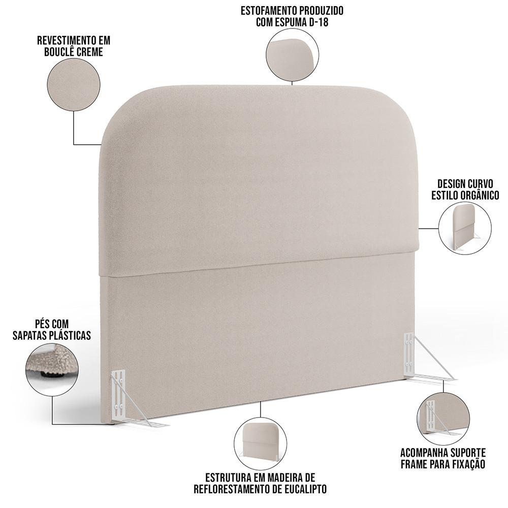 Cabeceira Cama Box Casal 140cm Orgânica Lanna W01 Bouclê Creme - Lyam Decor