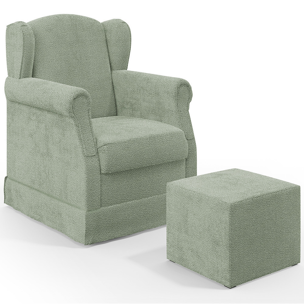 Poltrona De Amamentação Com Balanço E Puff Elisa P02 Bouclê Oliva - Lyam Decor