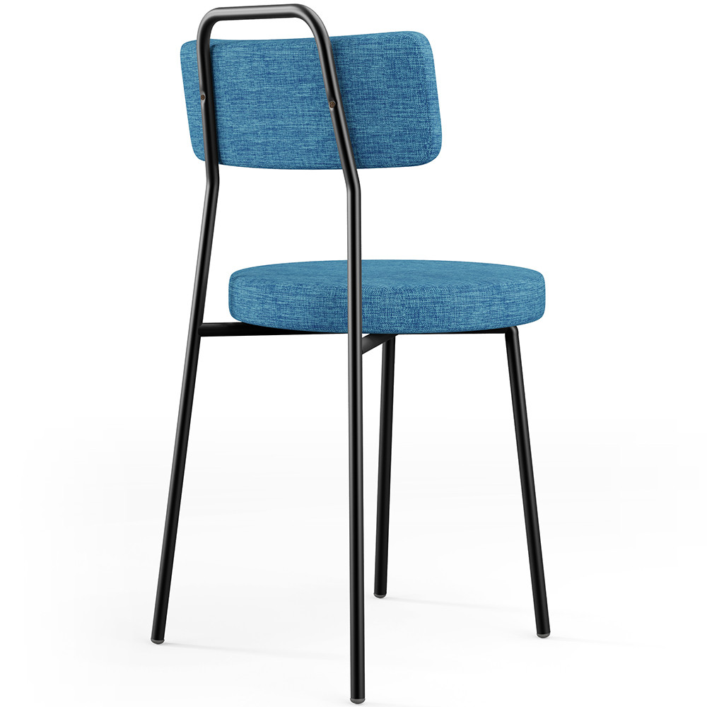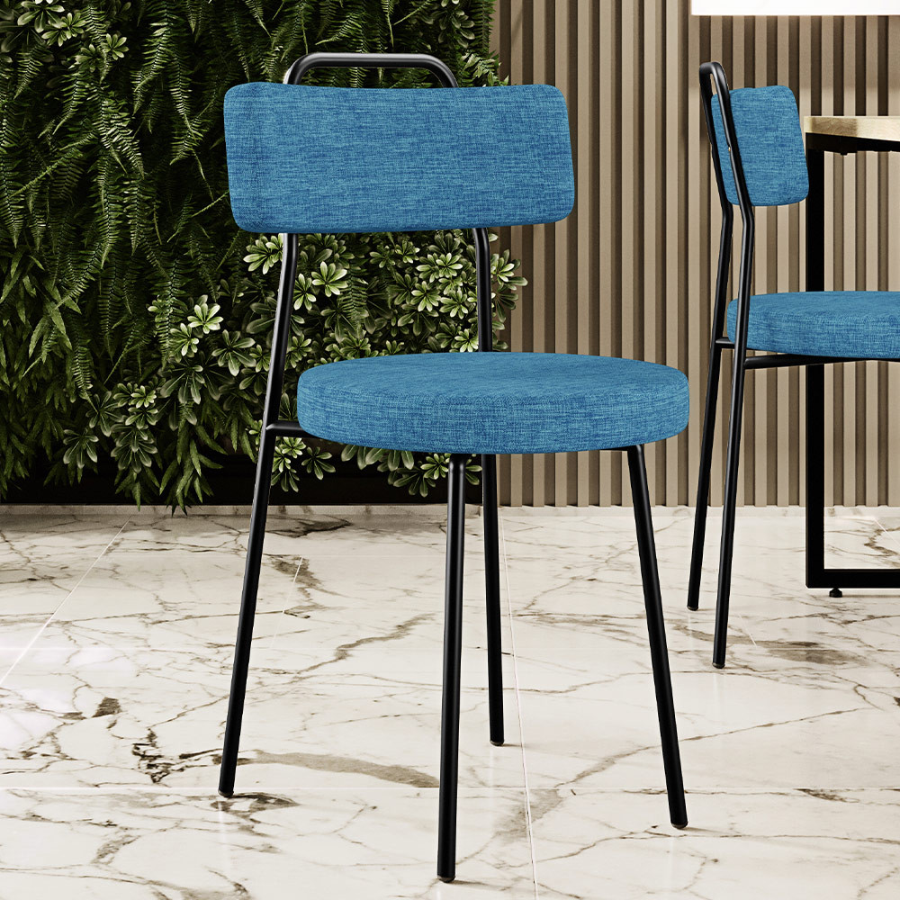 Kit 04 Cadeiras Decorativa Estofada Para Sala De Jantar Barcelona L02 Linho Azul - Lyam Decor