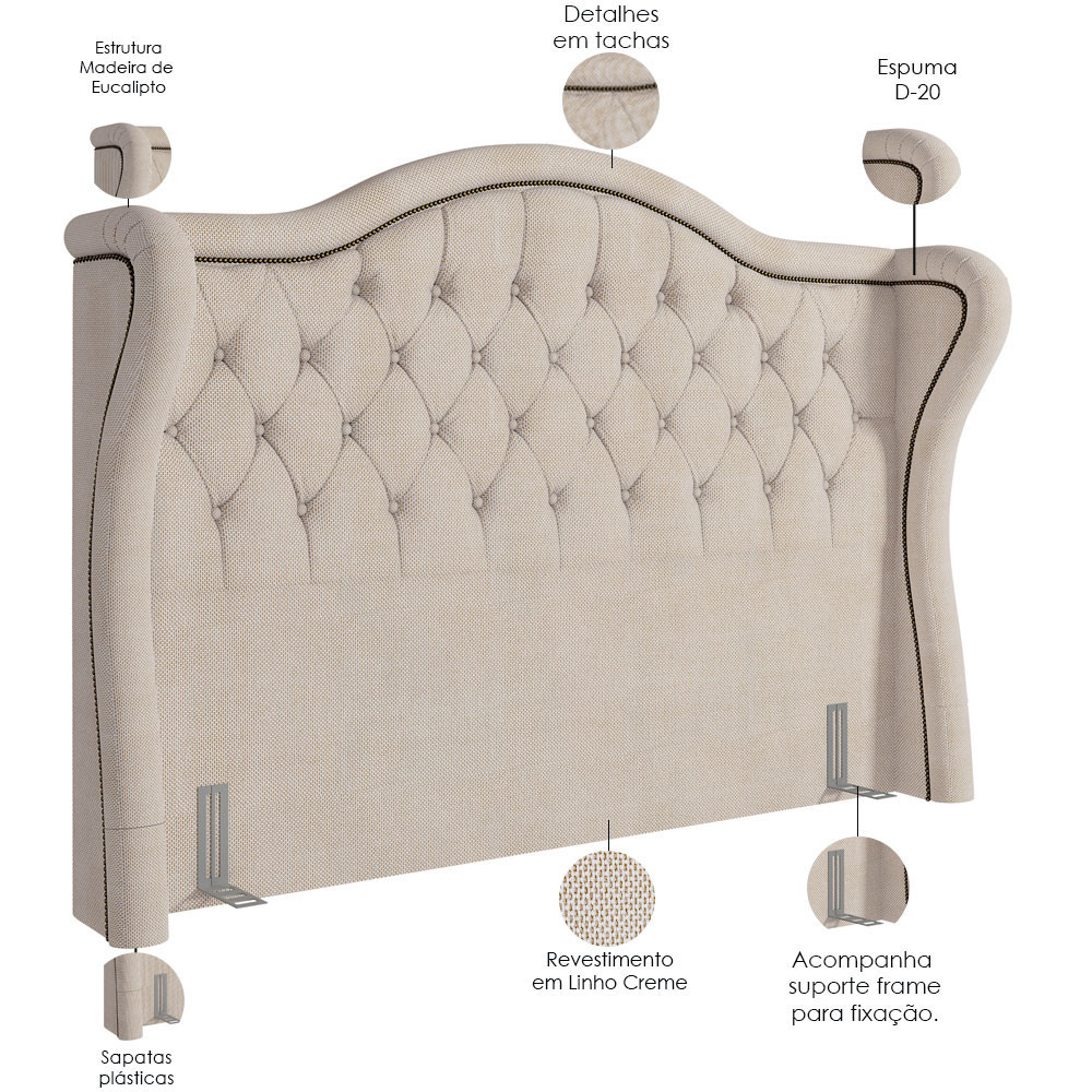 Cabeceira Cama Box Casal King 195 cm P05 Lisboa Linho Creme - Lyam Decor