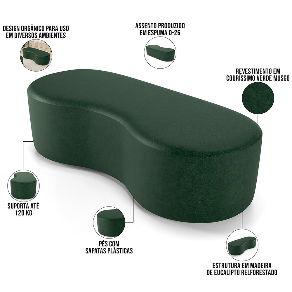 Puff Decorativo Orgânico para Living Quarto 140cm Orbit W01 Couríssimo Verde - Lyam Decor