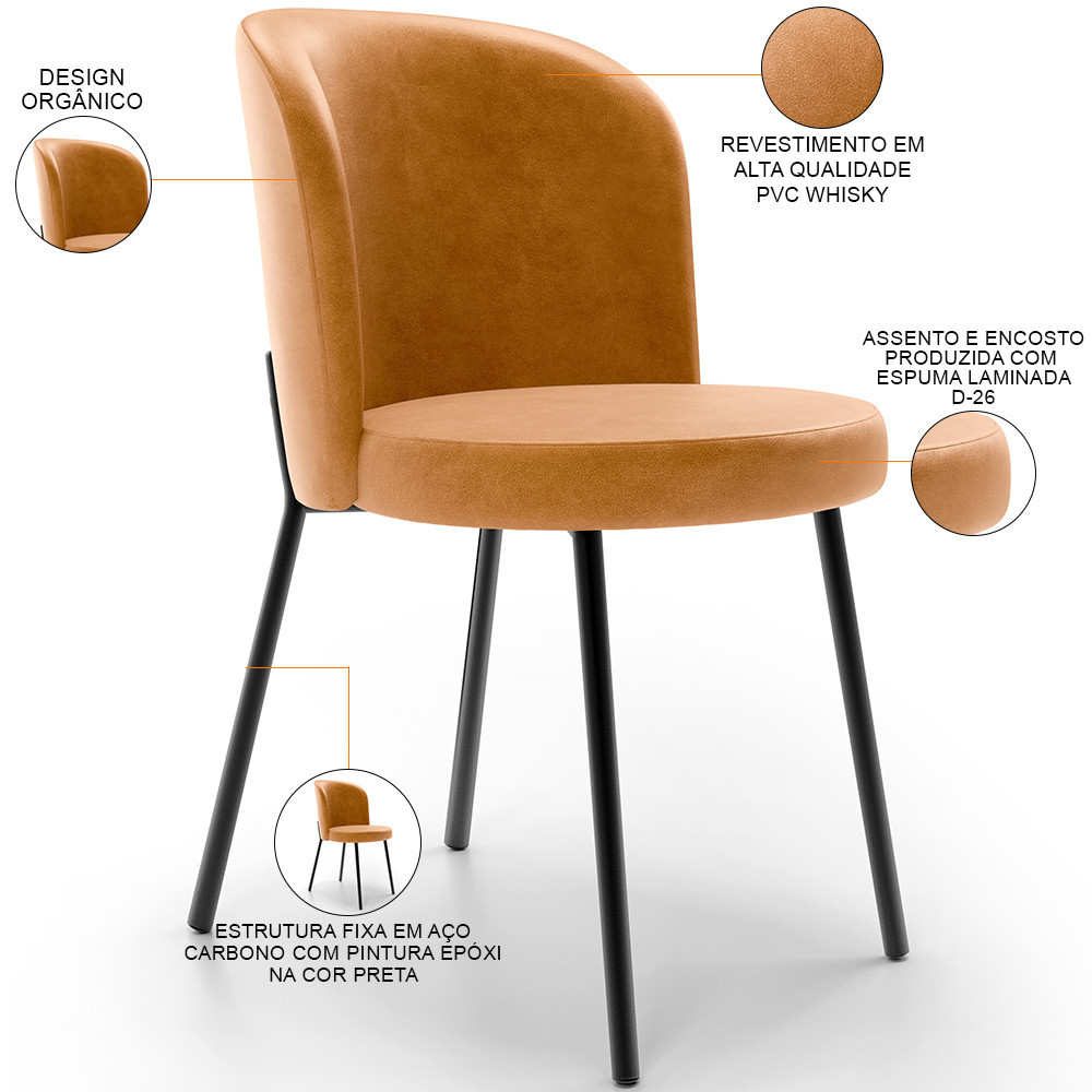 Cadeira Para Sala de Jantar Cozinha Estofada Gavi L02 Couríssimo Whisky - Lyam Decor