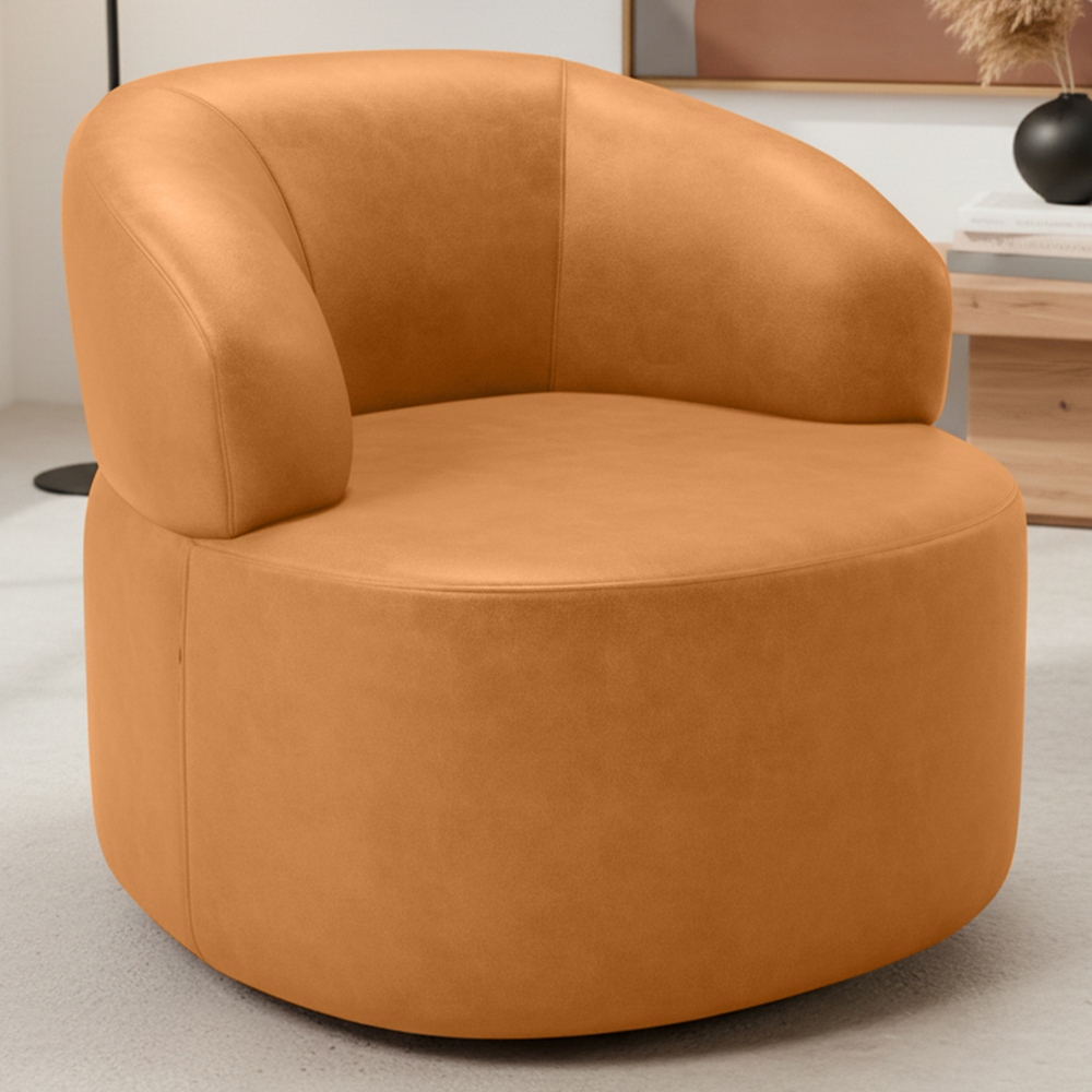 Poltrona Giratória Orgânica Para Sala de Estar Living Helena L02 Couríssimo Whisky - Lyam Decor