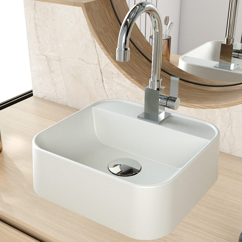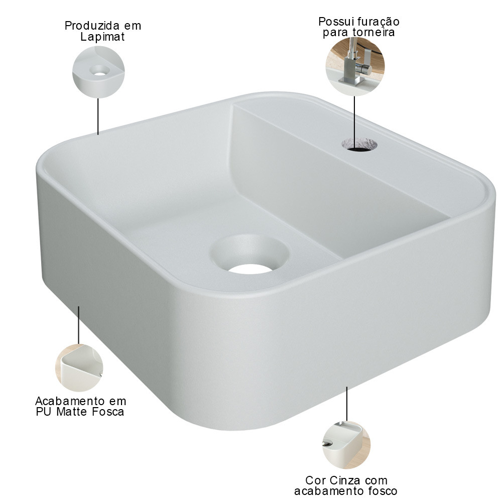 Kit 02 Cubas de Apoio Quadrada Para Banheiro Lavabo C01 QA31W Cinza Matte Fosca - Lyam