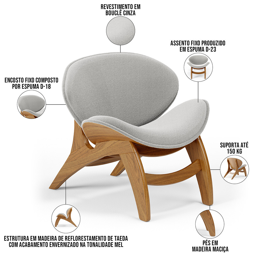 Kit 2 Poltronas Decorativa Orgânica Sala Living Kadosh L02 Bouclê Cinza - Lyam Decor