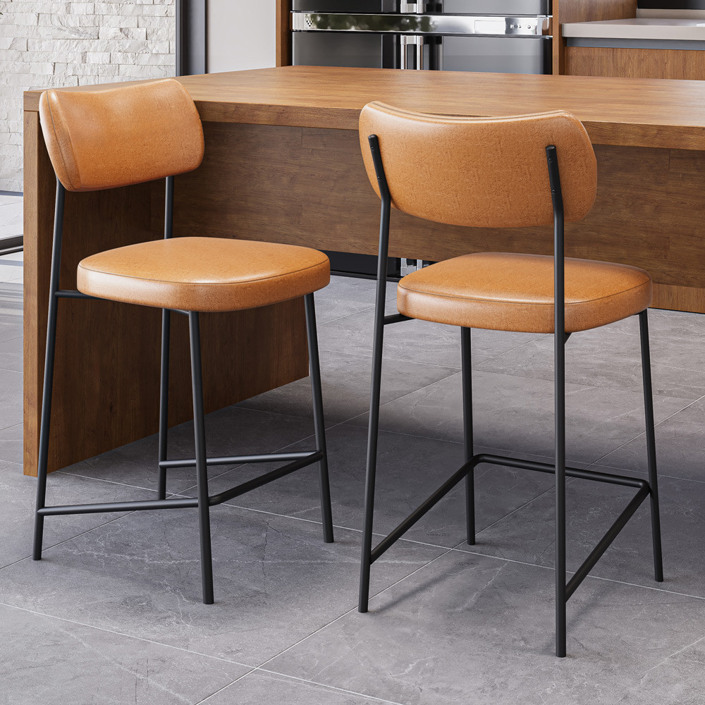 Kit 03 Banquetas Baixa Bar Cozinha Sala De Jantar Preto Elira L02 Couríssimo Whisky - Lyam Decor