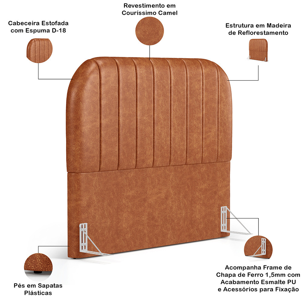Cabeceira Cama Box Queen Estofada Orgânica 160cm Alice W01 Couríssimo Camel - Lyam Decor