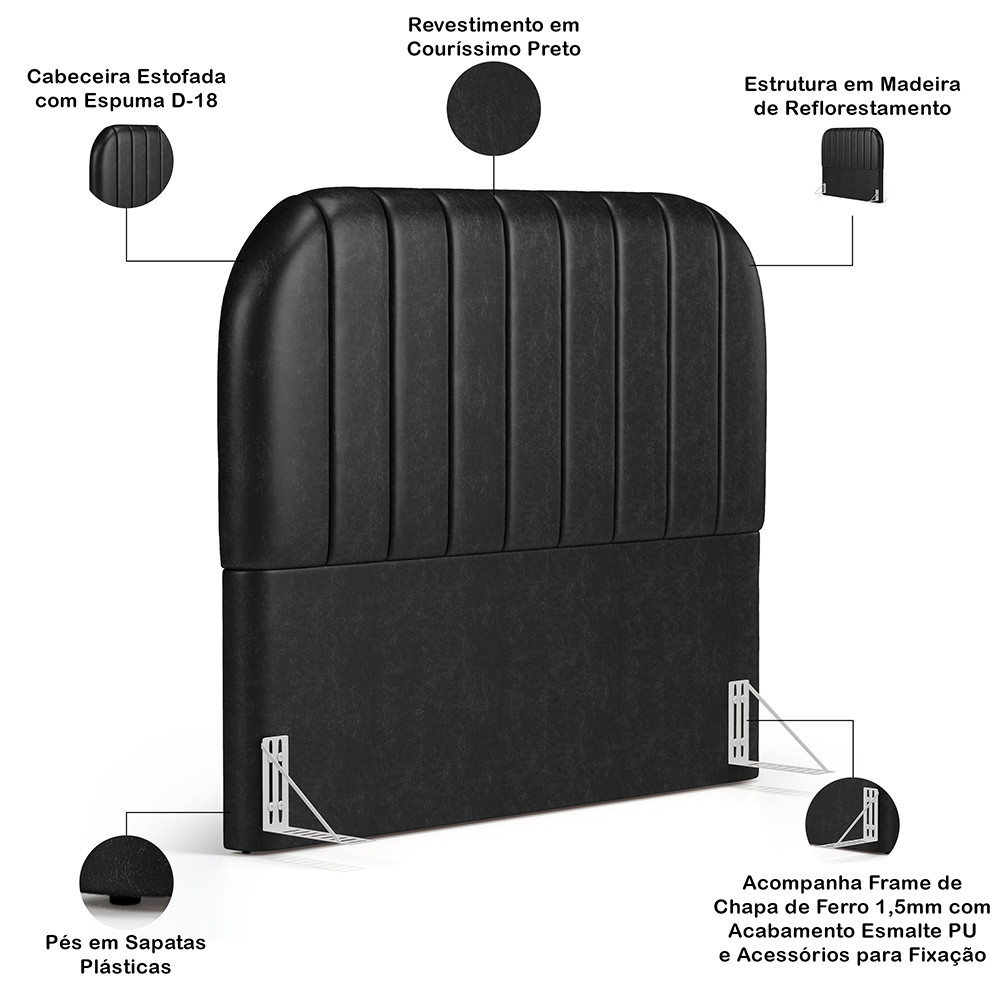 Cabeceira Cama Box Queen Estofada Orgânica 160cm Alice W01 Couríssimo Preto - Lyam Decor