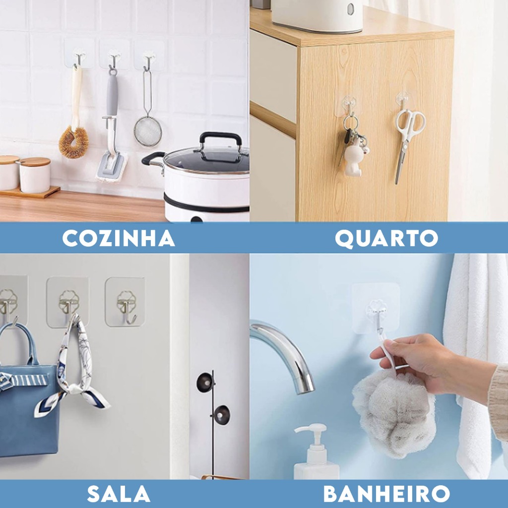 Kit Ganchos Adesivo Parede Super Aderência Transparente