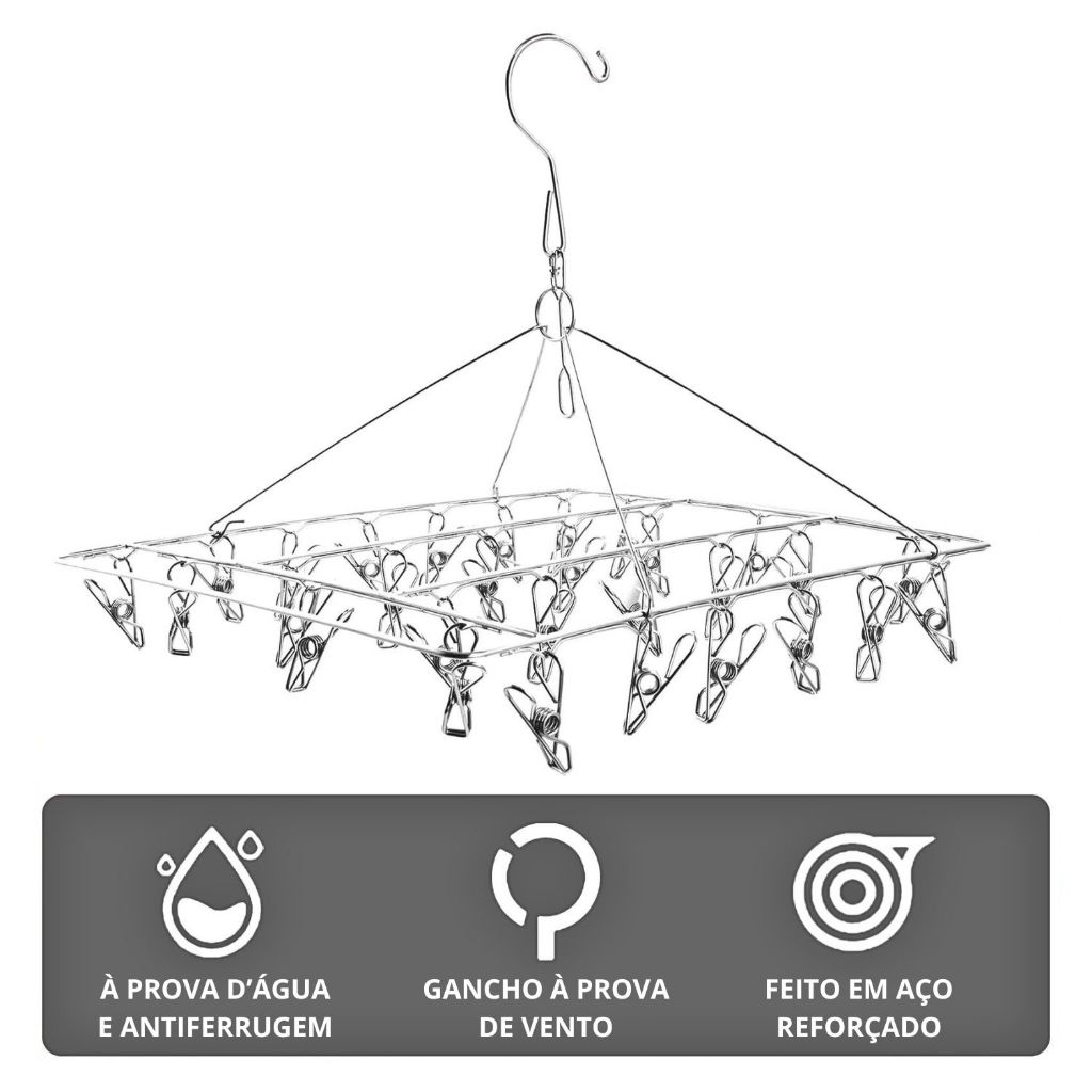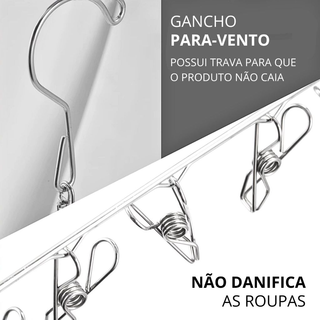 Varal 20 Prendedores Roupa Bebe Calcinha Cueca Dobrável Inox