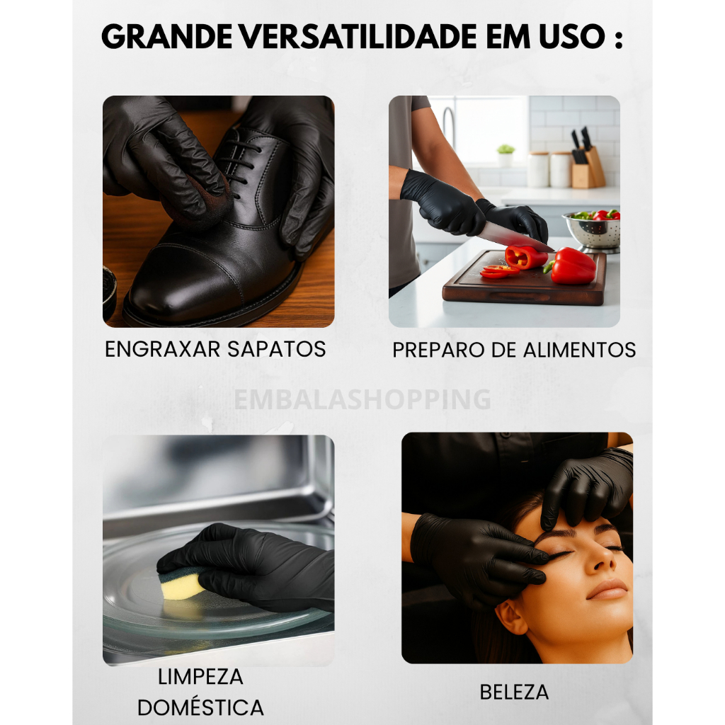 Kit 100 Luva Nitrílica Sem Pó Preta | Tamanhos P, M e G Inoven Resistente durabilidade