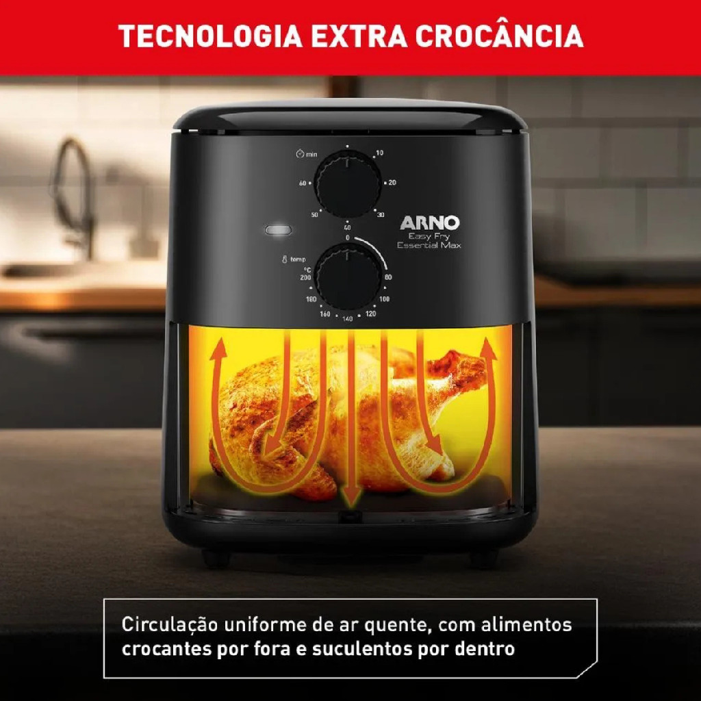 Fritadeira Sem Óleo Air Fryer Arno Essential Max 5L Preta AFE5