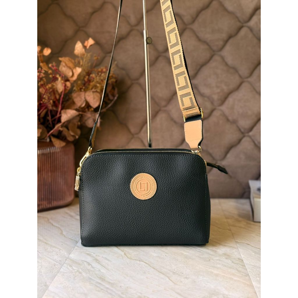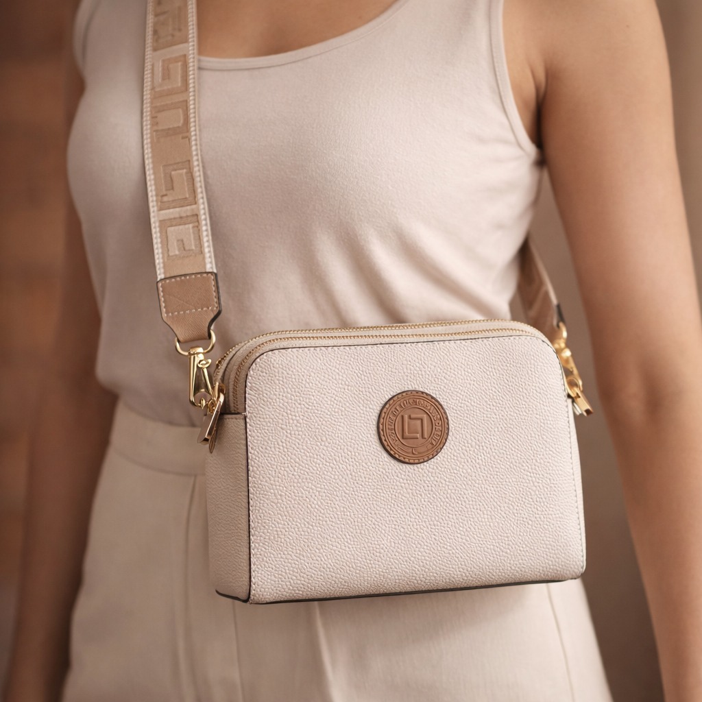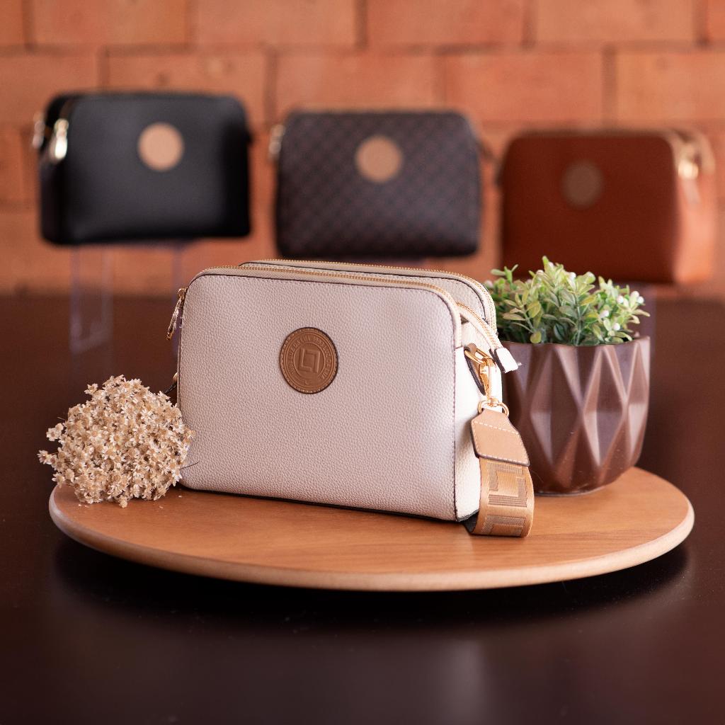 Bolsa Tiracolo Feminina Compacta 2 Zíperes Alça Personalizada Dourada Elegante