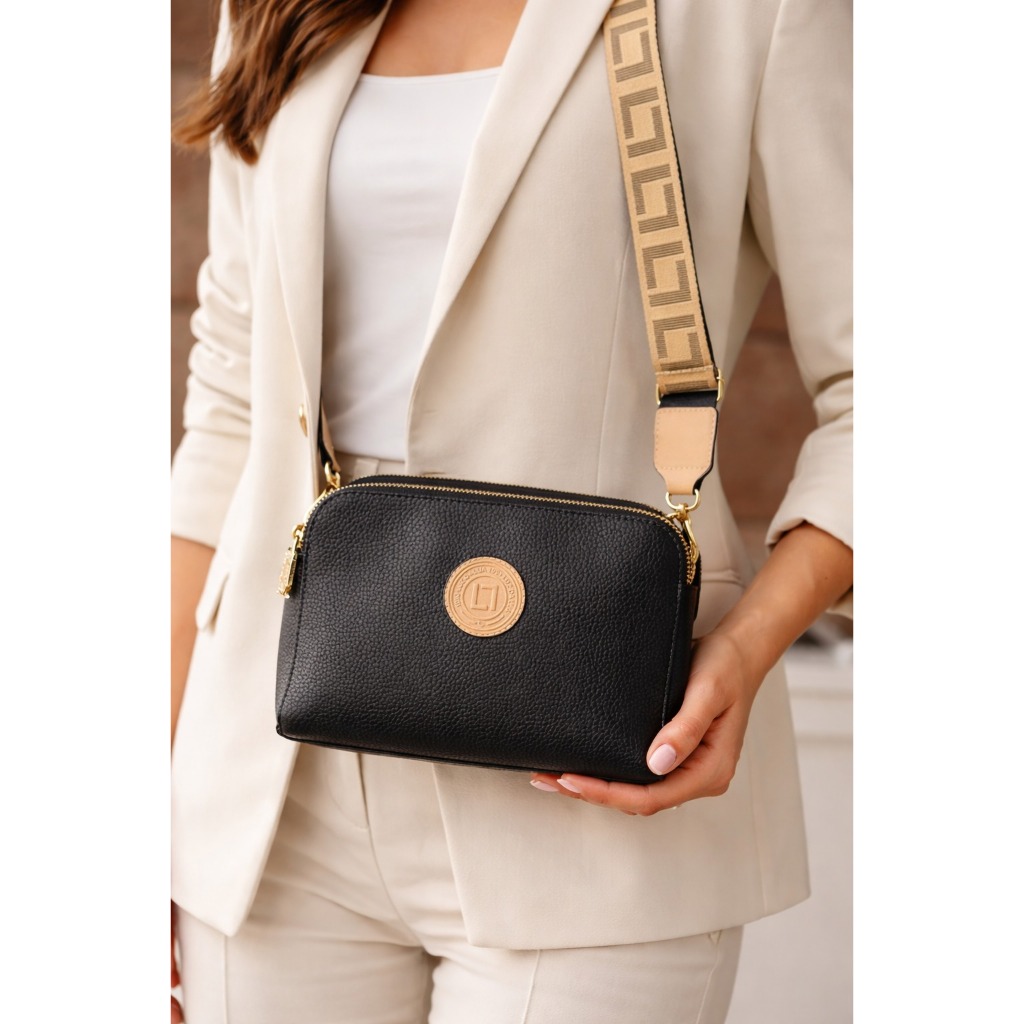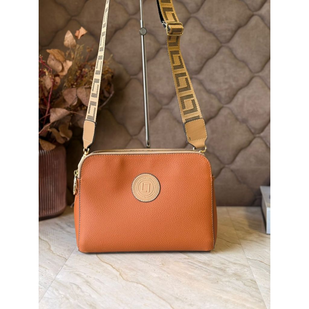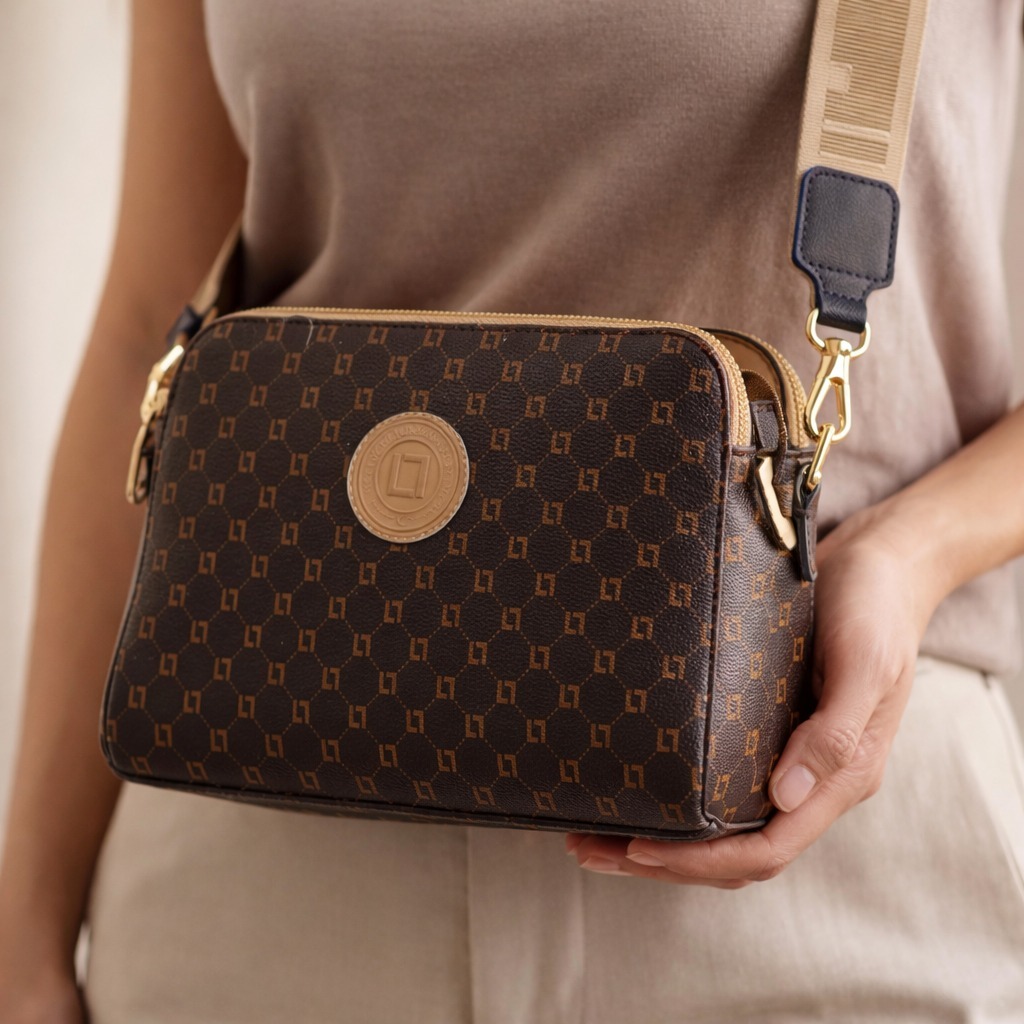 Bolsa Tiracolo Feminina Compacta 2 Zíperes Alça Personalizada Dourada Elegante