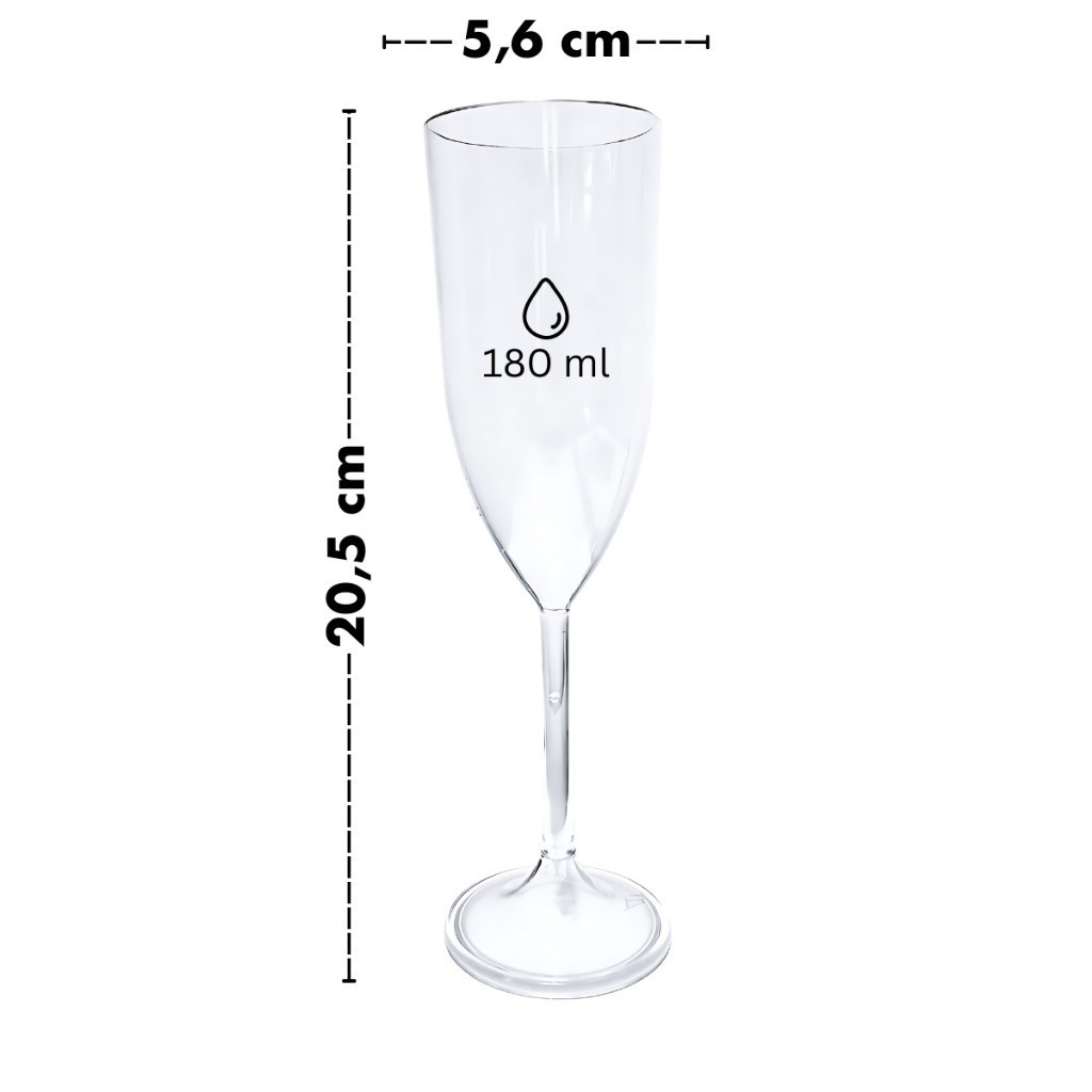 Kit 20 Taças Espumante Acrílico 180ml Translúcidas Festa Evento Casamento