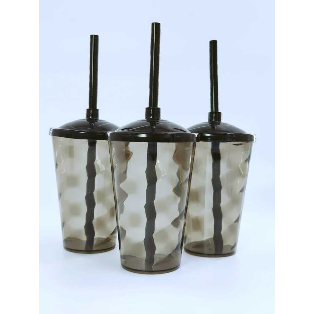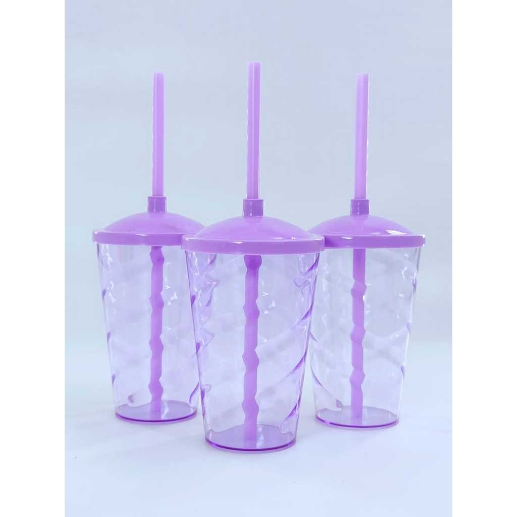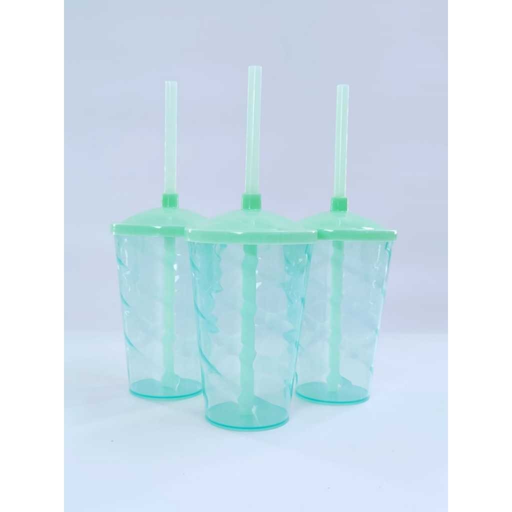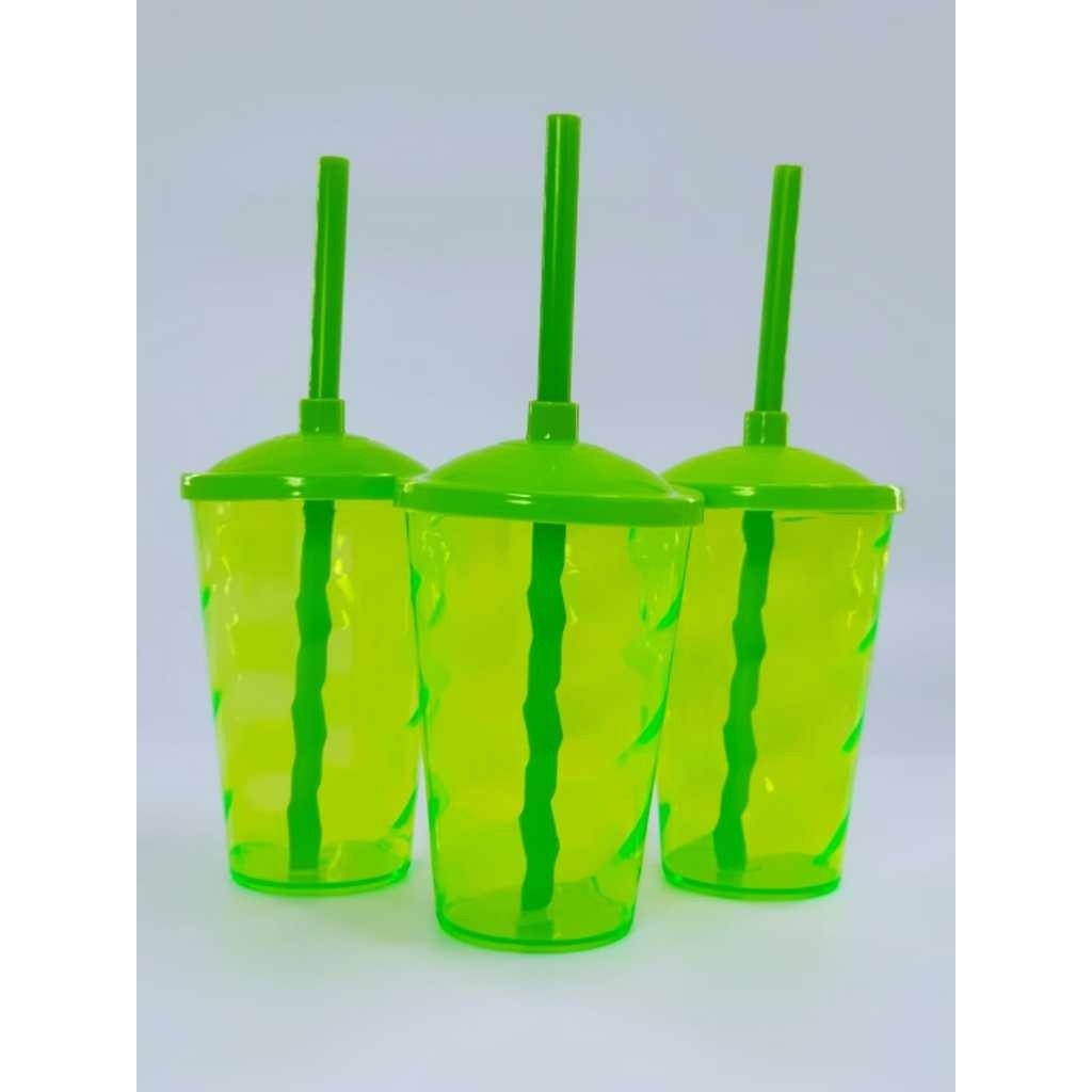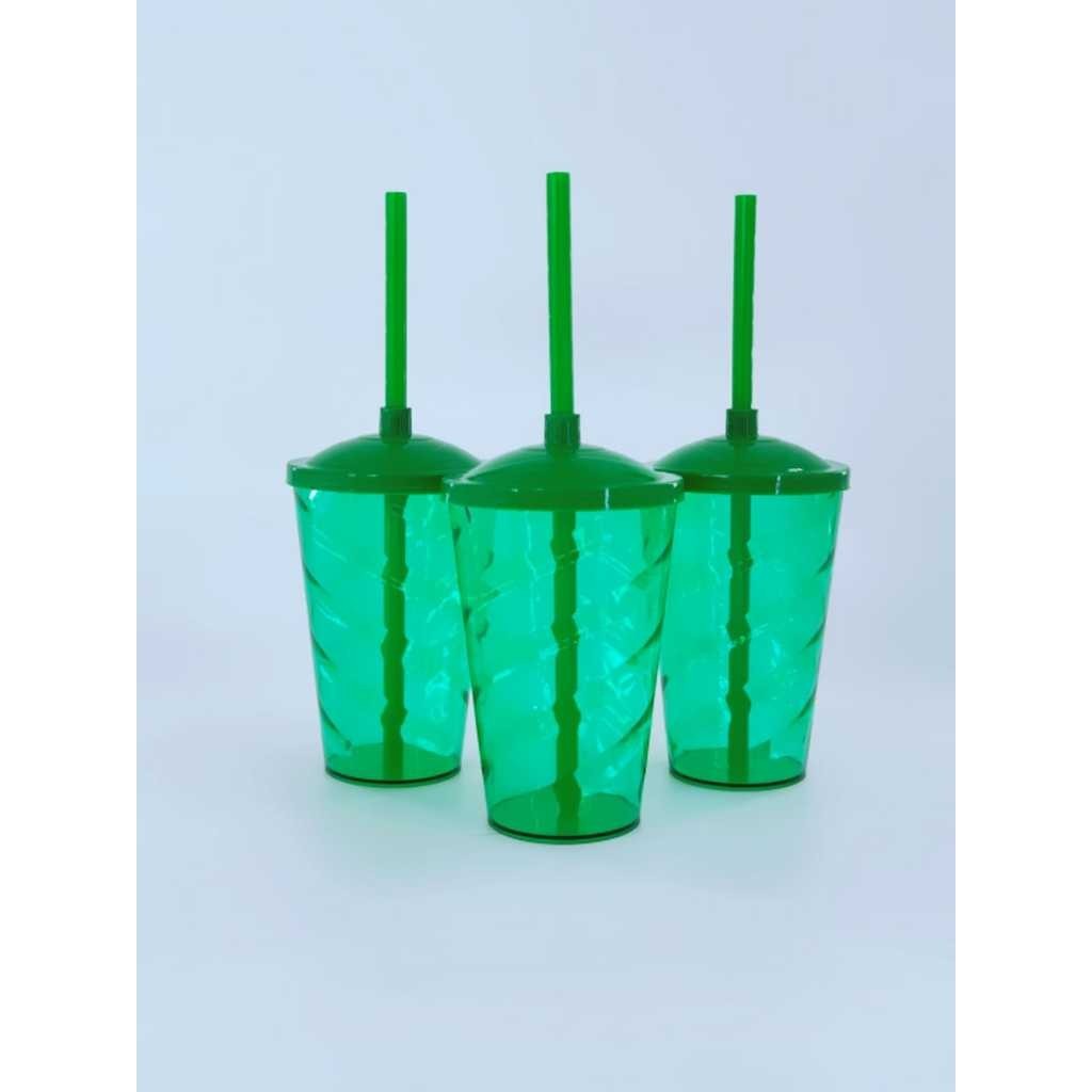 Kit 50 Copos Twister 400ml Translúcido com Tampa e Canudo – Acrílico Resistente