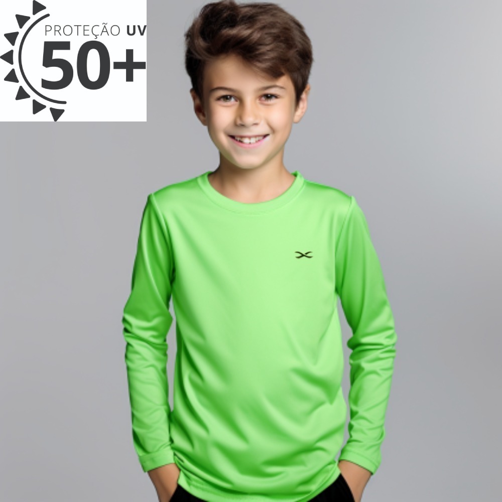 Camisa Moda Proteção Solar Uv+50 Camiseta 2 Ate 16 Anos Infantil Segunda Pele Térmica Praia Verão