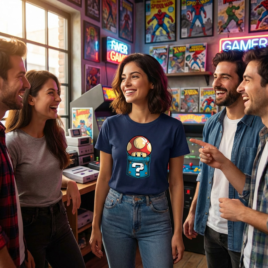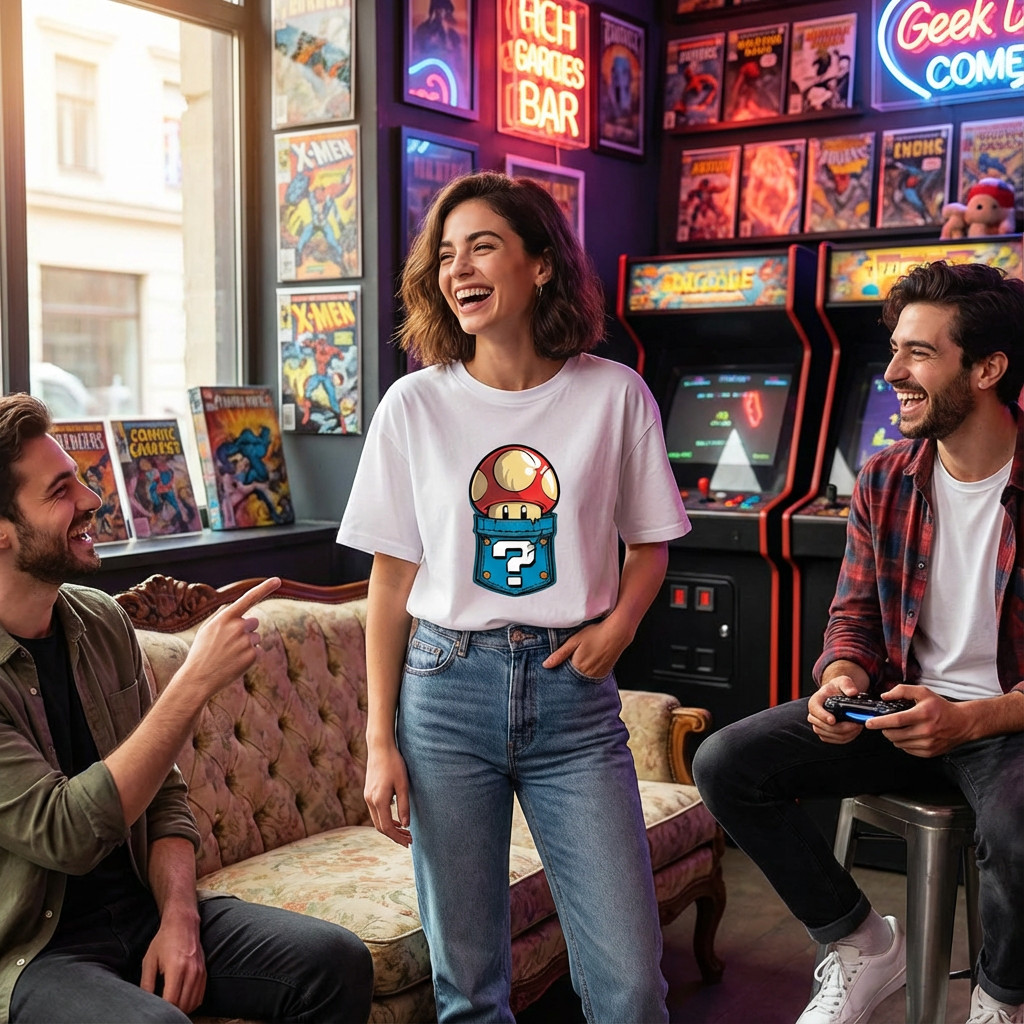Camisa Geek Cogumelo Super Mario Estampa DTF Durável Confortável Casual Gamer Algodão