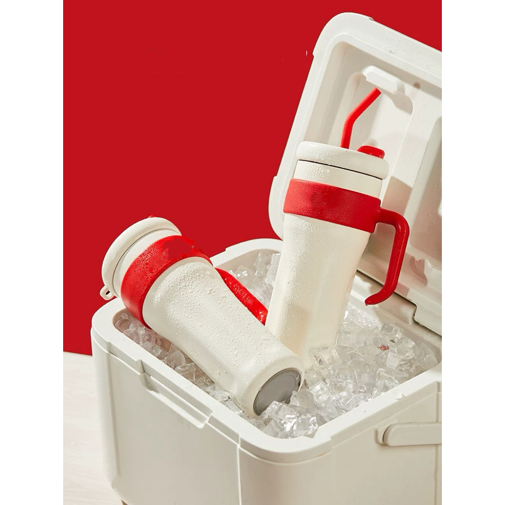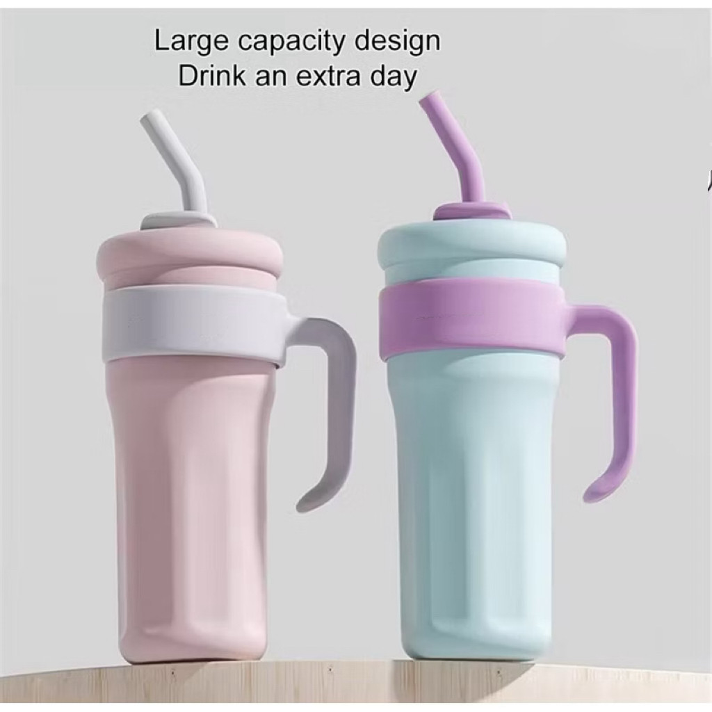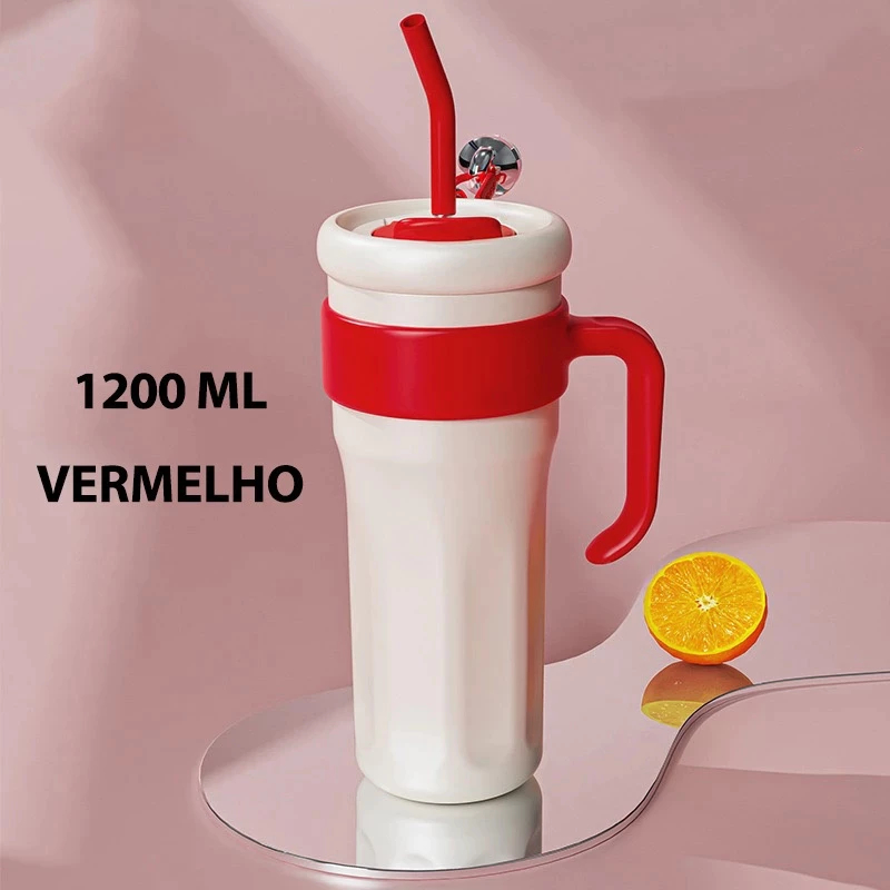 Copo térmico com Canudo de Inox 1200ml Com Alça Isolamento Térmico Academia com tampa 2 funções YB