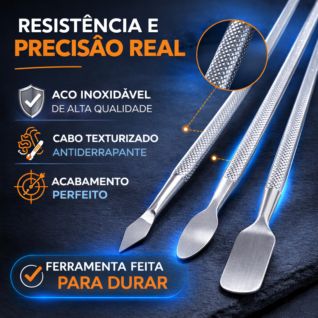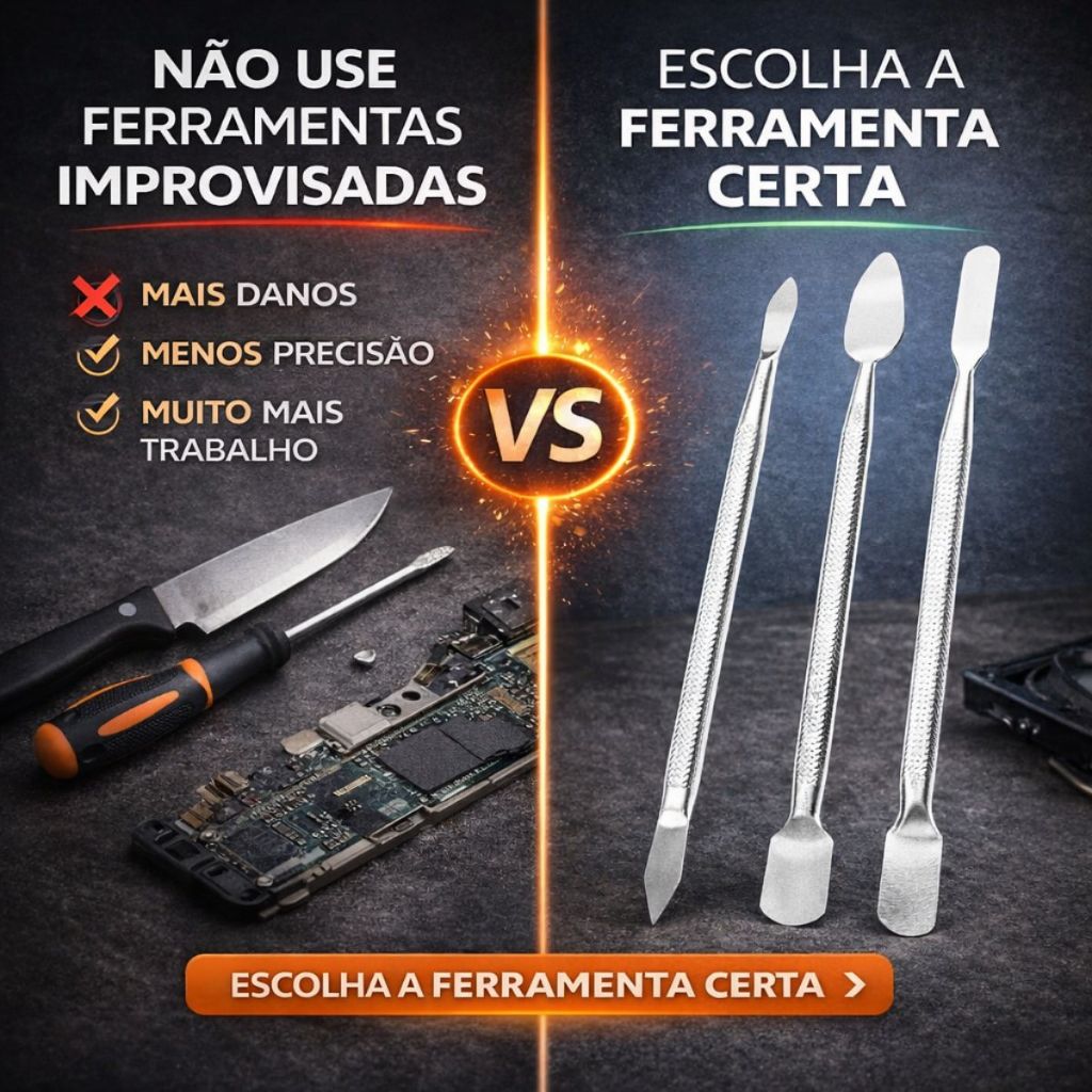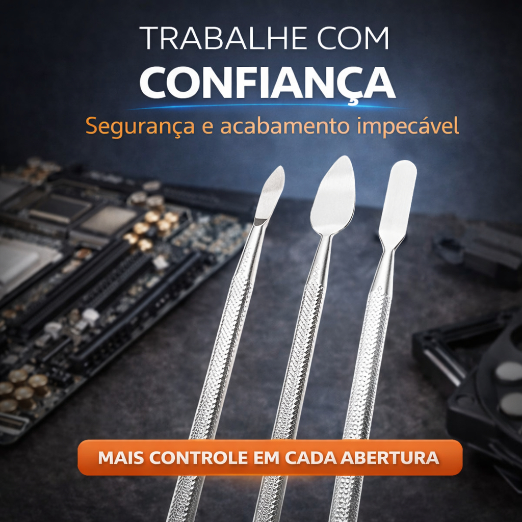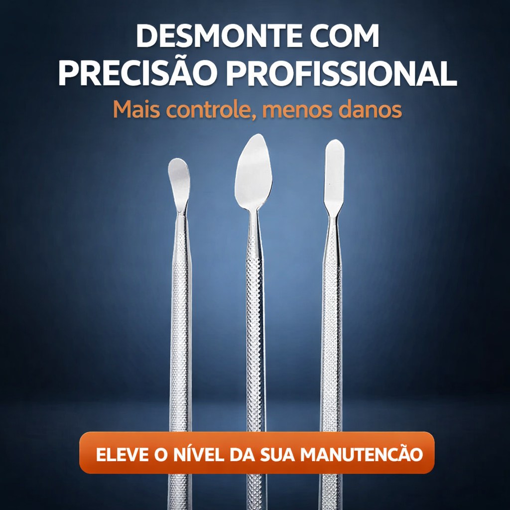 Jogo de Espátulas Profissional em Aço Inox 3 Peças para Manutenção de Celular e Eletrônicos