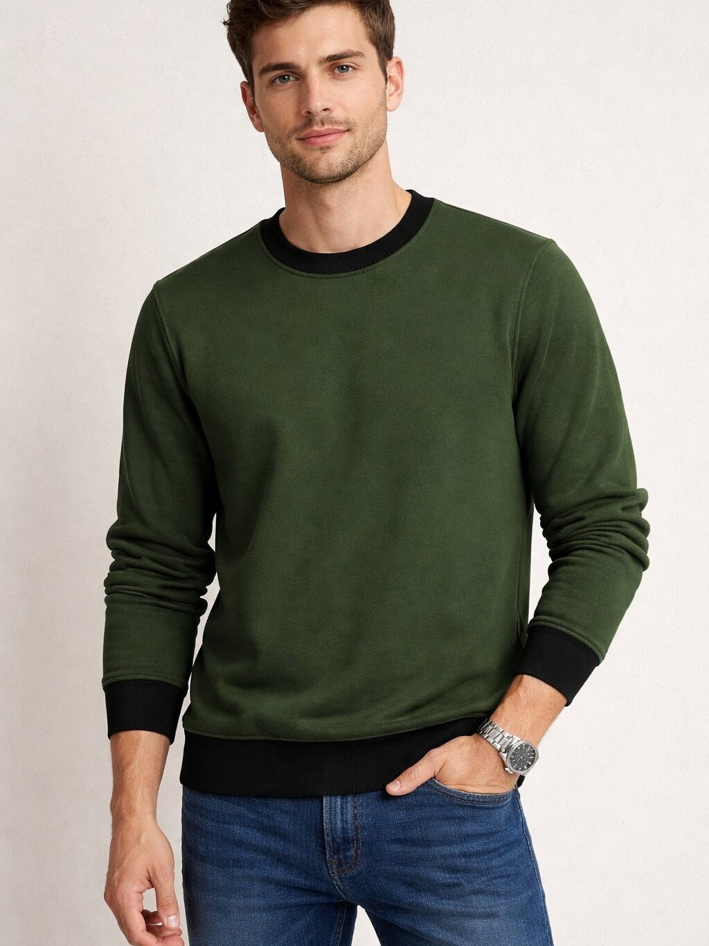 Moletom Verde Militar Básico Unissex Gola Careca Confortável para Inverno