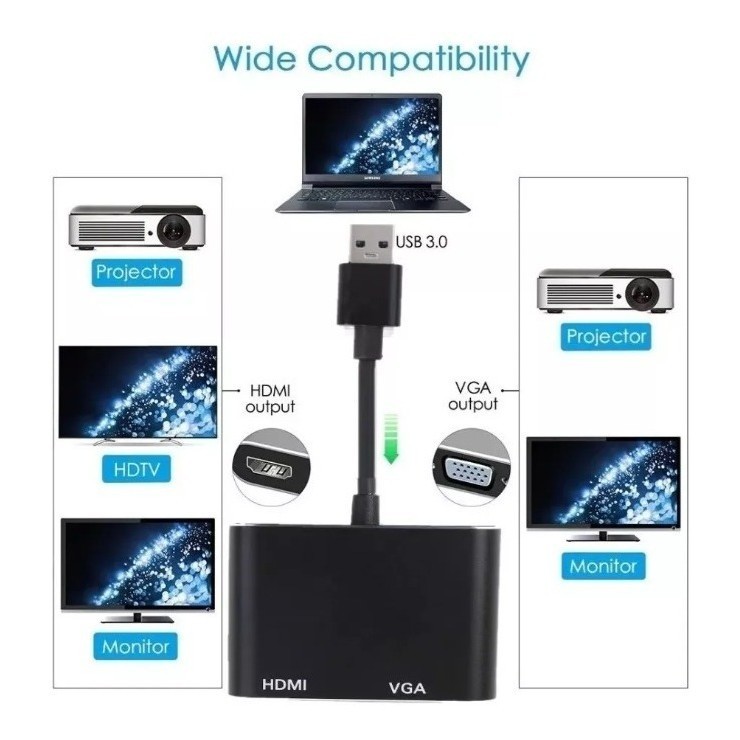 Cabo Adaptador Usb 3.0 Para Hdmi Vga Video Audio 1080p