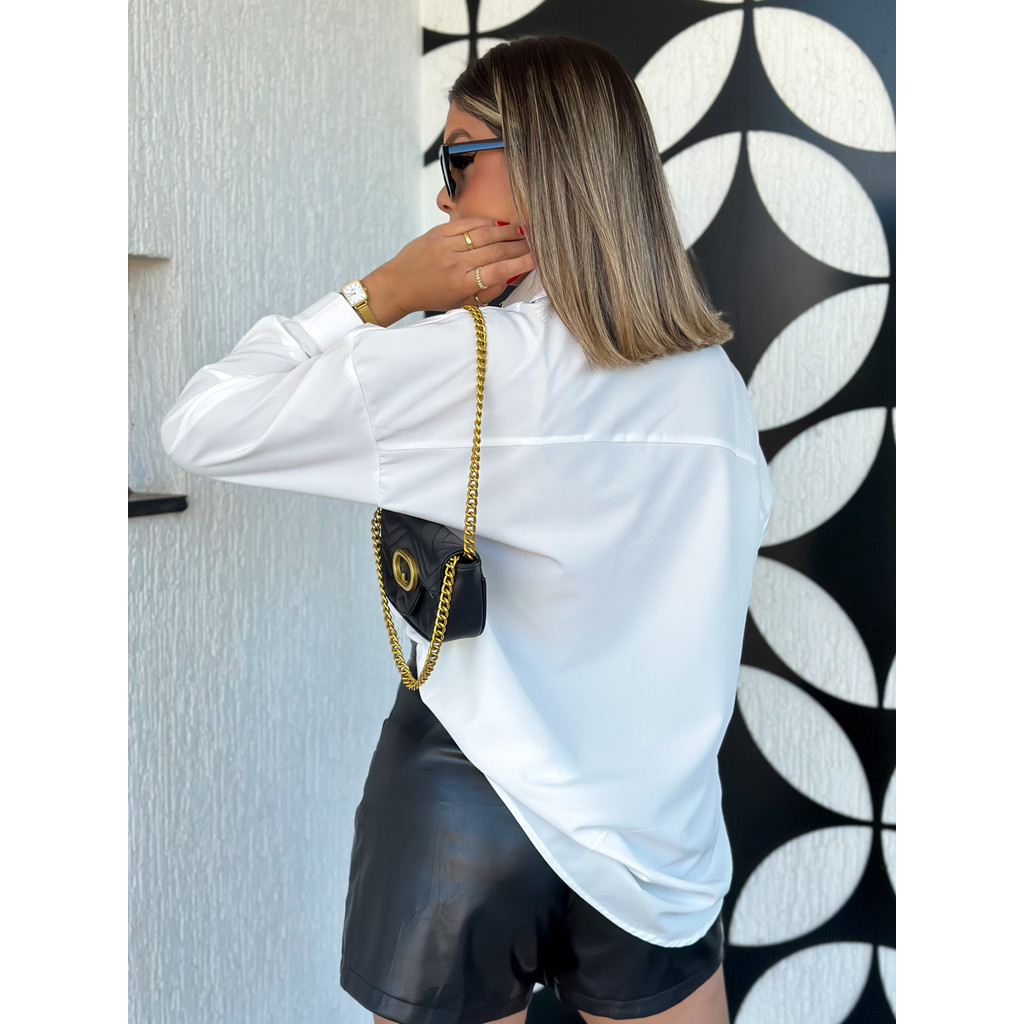 Camisa feminina camiseta branca preto manga longa blusa elegantes social