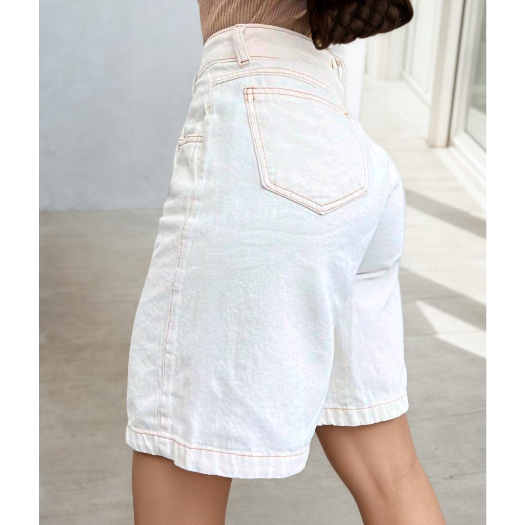 Short Bermuda Jeans Feminina Cor Lisa Sem Rasgo Com Bolsa Moda Evangélica Cor Branca