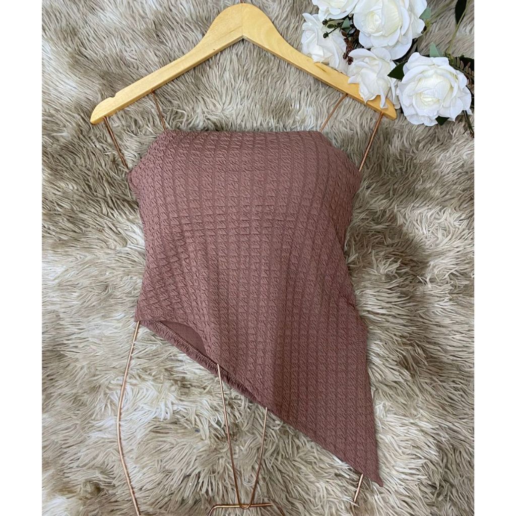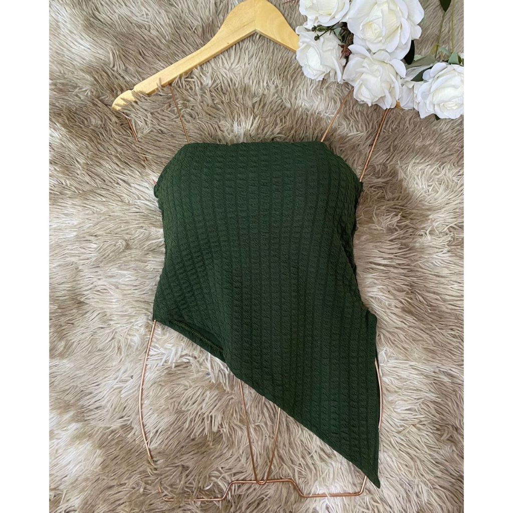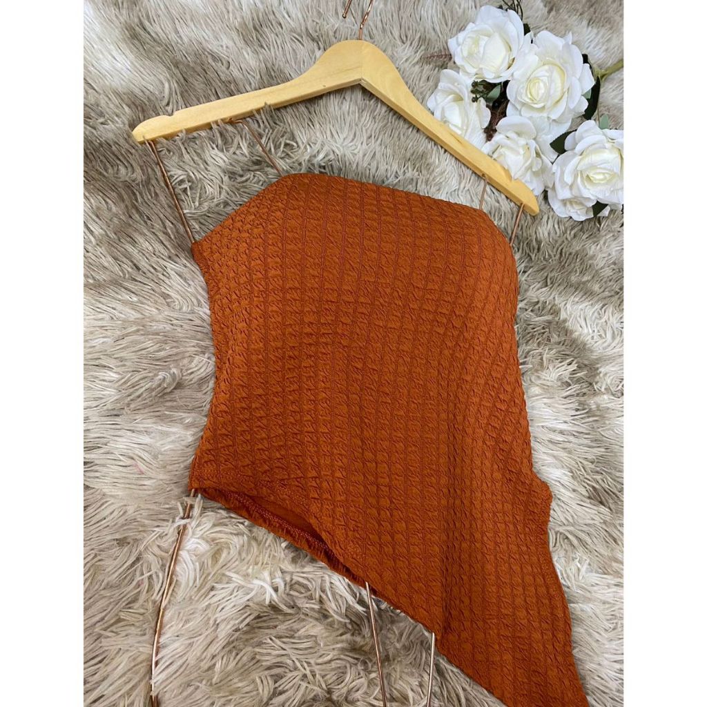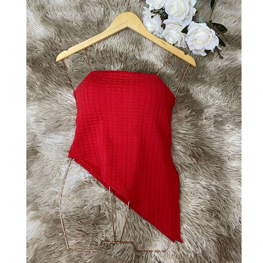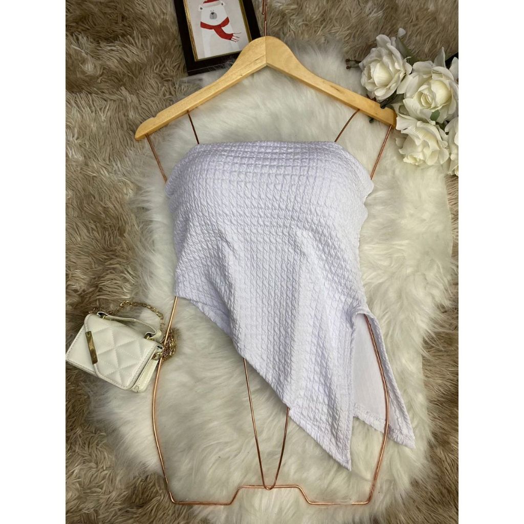 Blusa Tomara que Caia Assimétrica Bubble O Ponto Alto da Moda Moderna Cropped Com Bojo em Anarruga Assimetrica Ribana