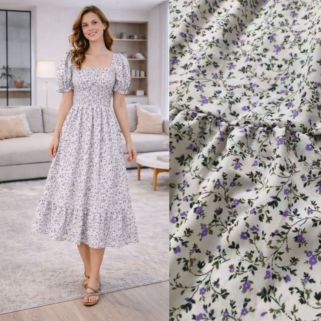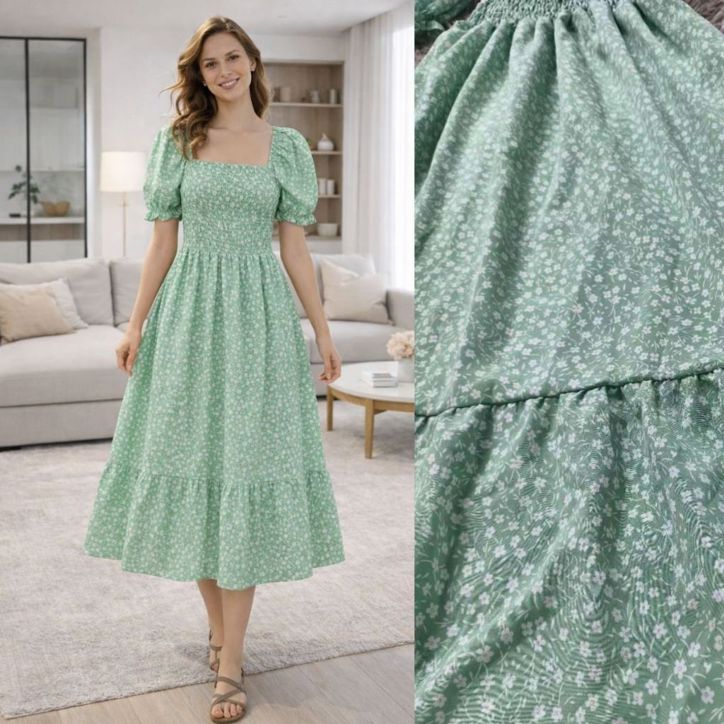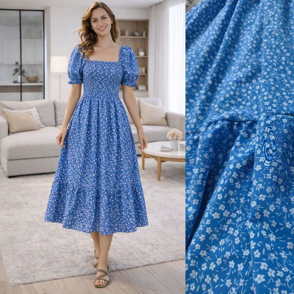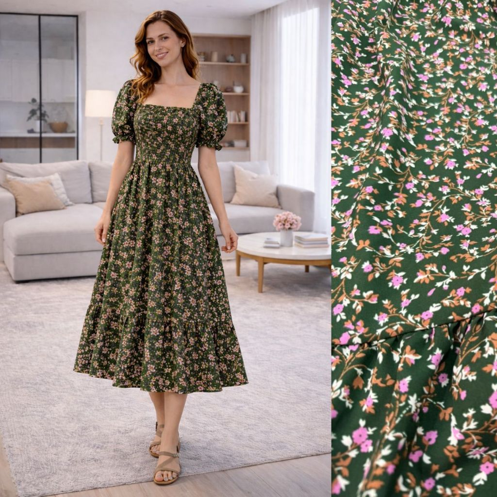 Vestido Feminino Midi Manga Princesa Estampado Flor moda Evangélica