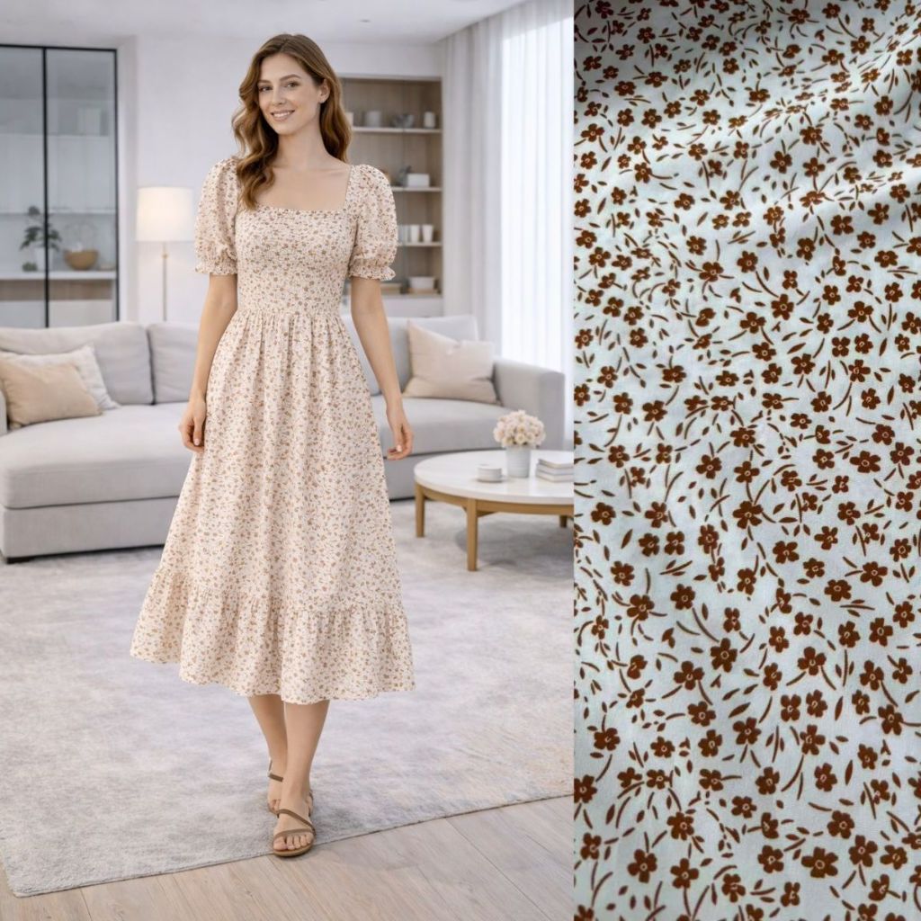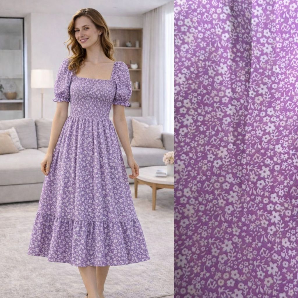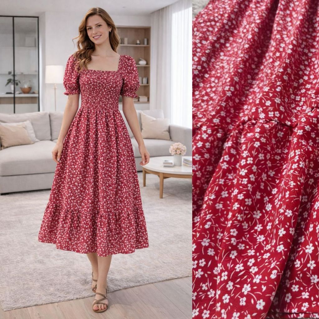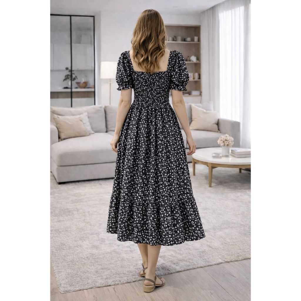 Vestido Feminino Midi Manga Princesa Estampado Flor moda Evangélica