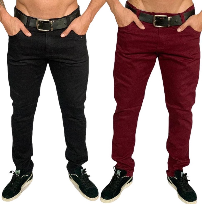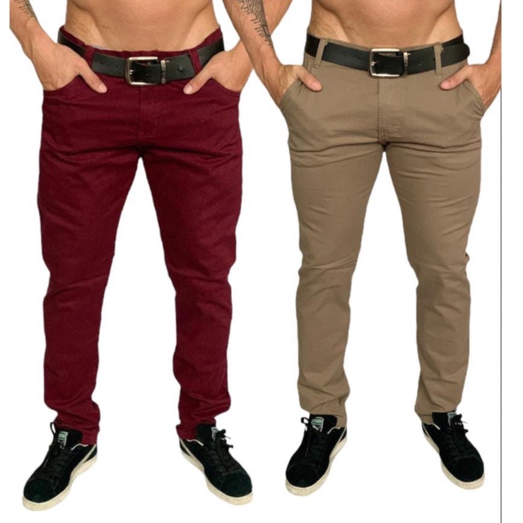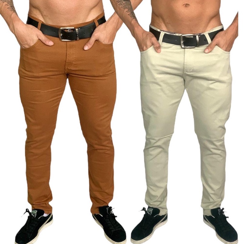 Kit 2 Calça Sarja Masculina Com Lycra Elastano Slim