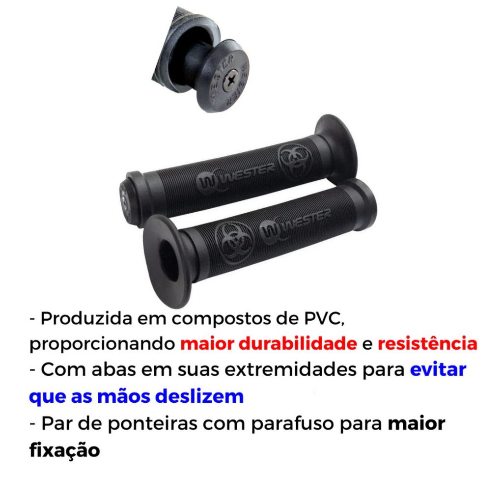 Manopla de Bicicleta Punho Pro-W Com Ponteira Preto Wester Bike Luva Preta Par