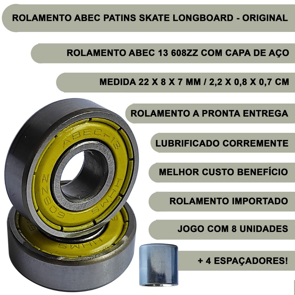 Kit 8 Rolamento Todos Abec 5 7 9 11 13 15 Skate Patins In Line Quad + 4 Espaçadores