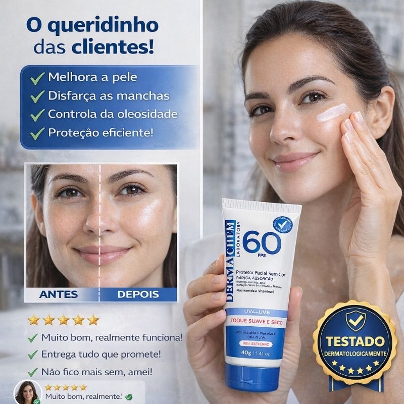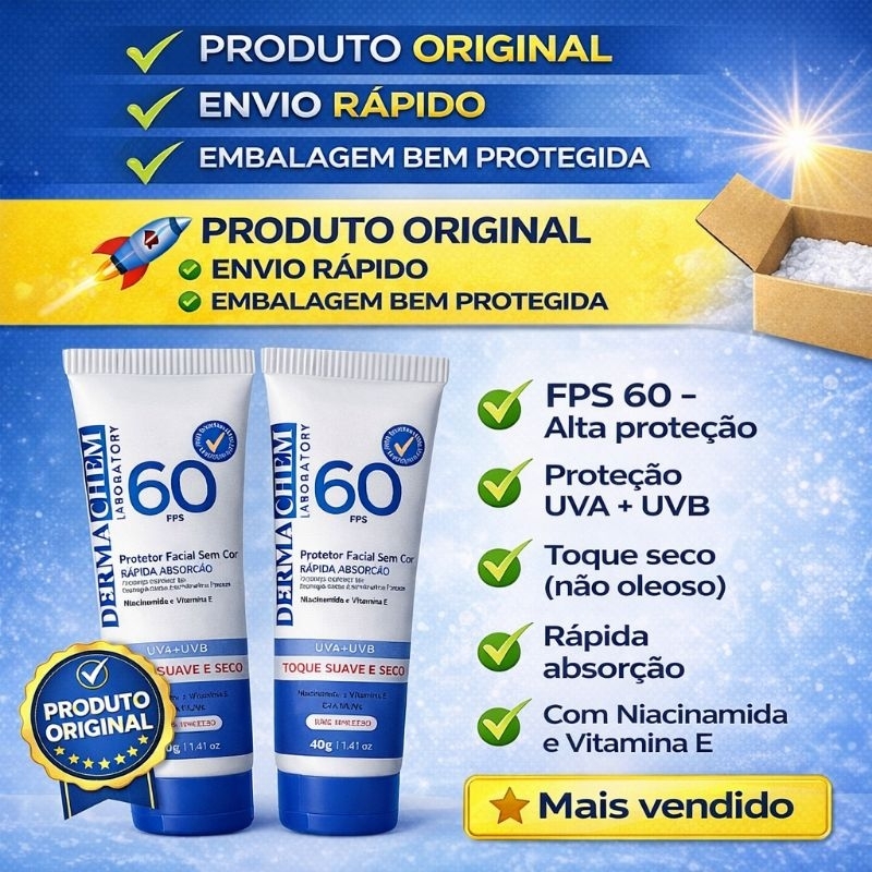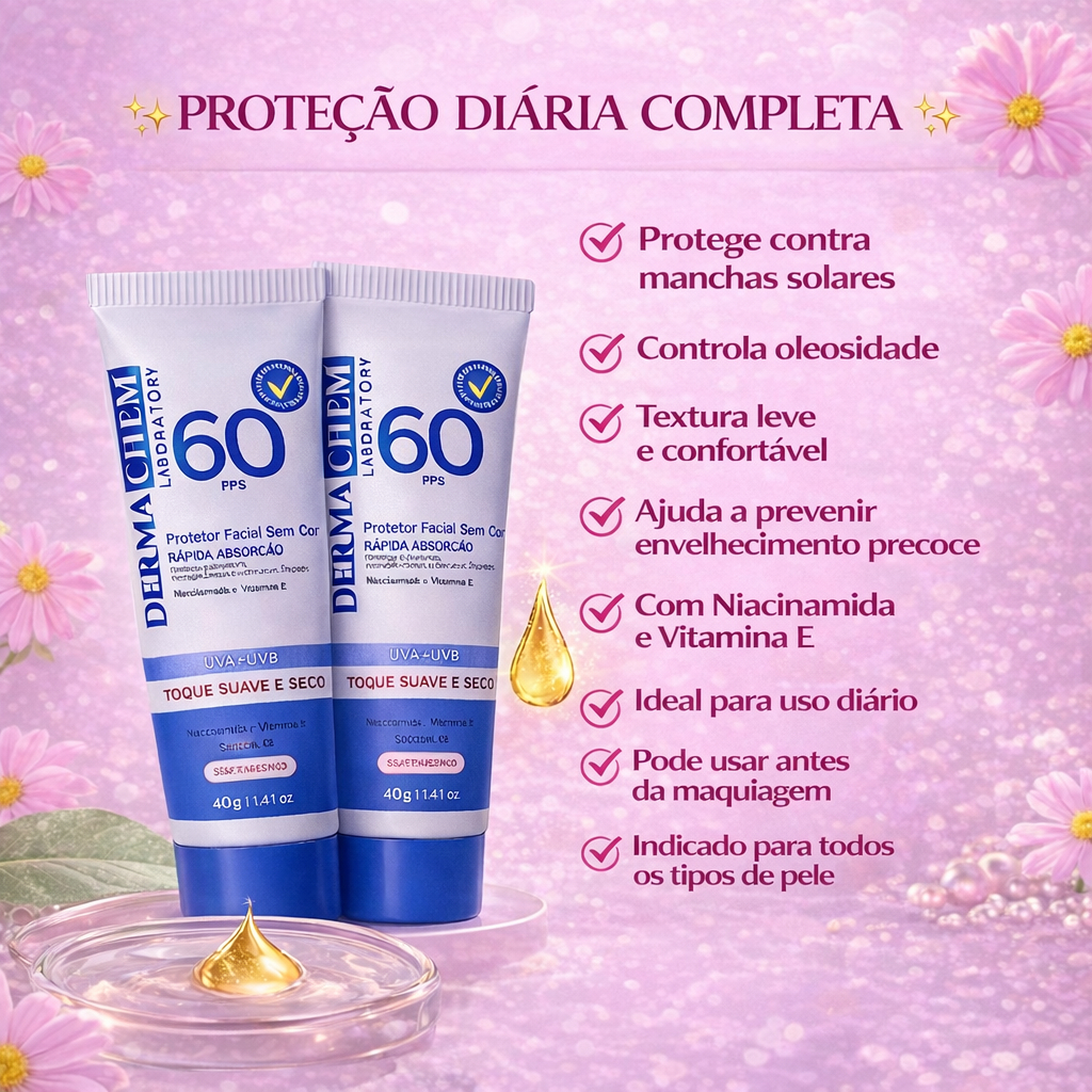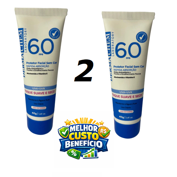 Kit Protetor Solar Facial Dermachem FPS 60 Toque Seco Oil Free UVA UVB 40g sem cor 1e 2 Unidades Original