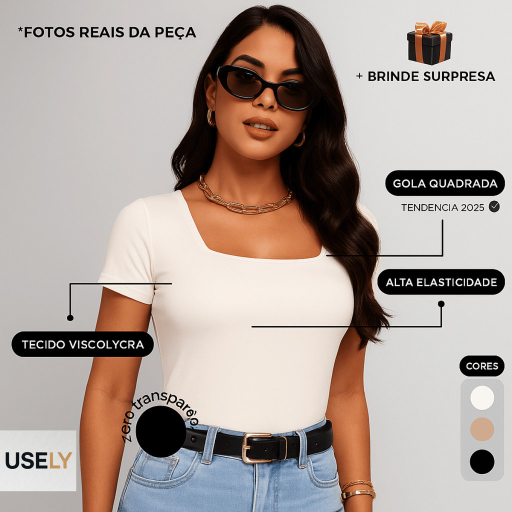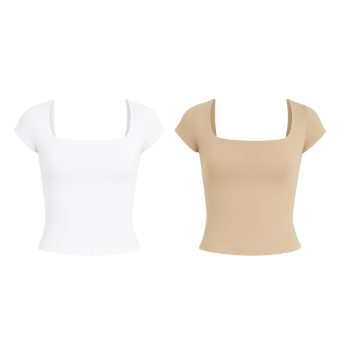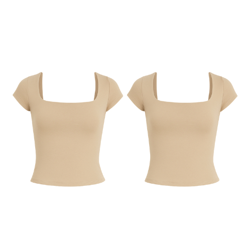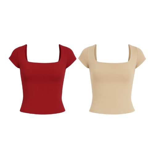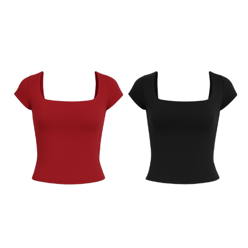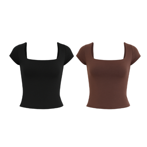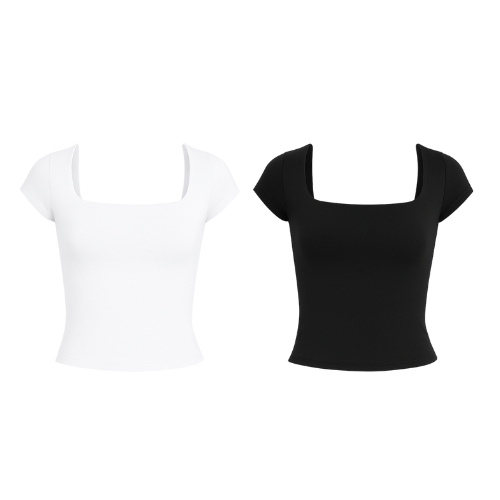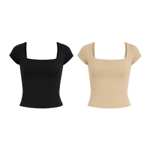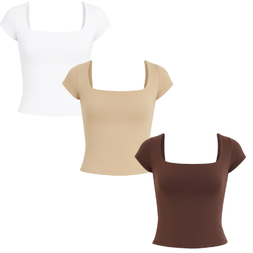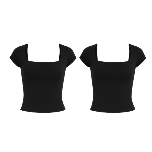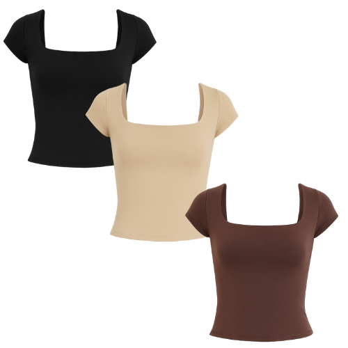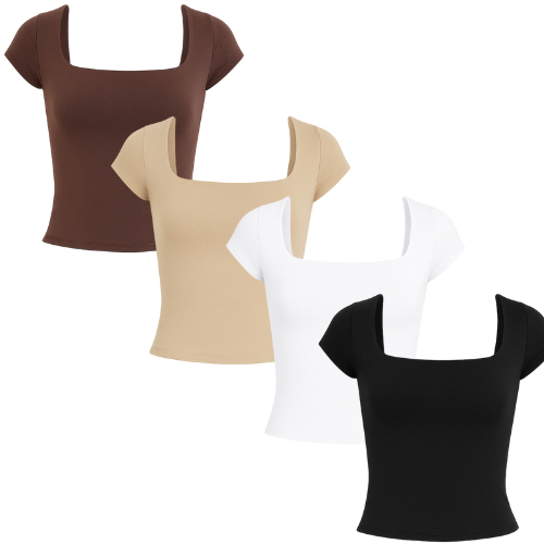 Kit 1 a 4 Blusas Feminina Manga Curta Decote Quadrado Moda Casual Blogueira Verão