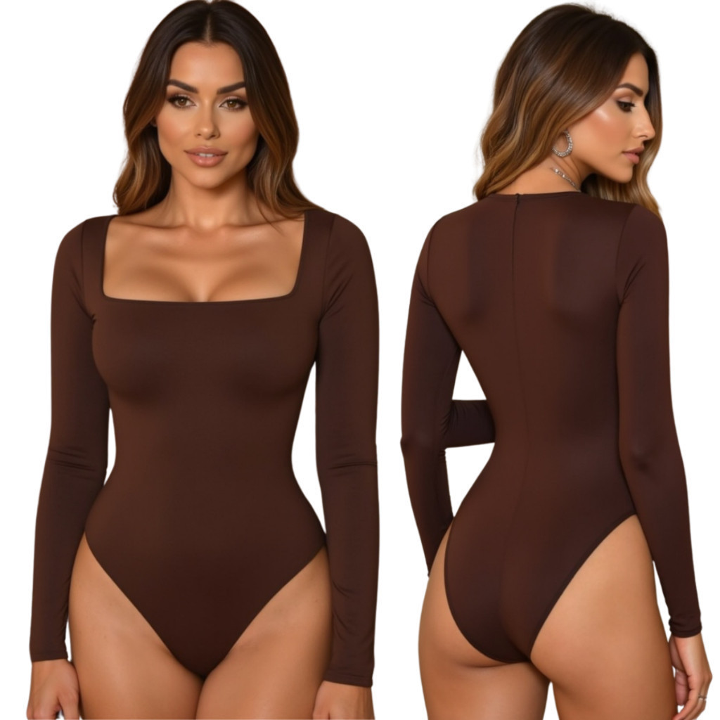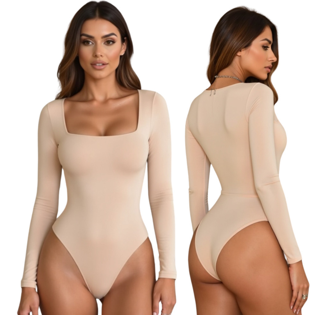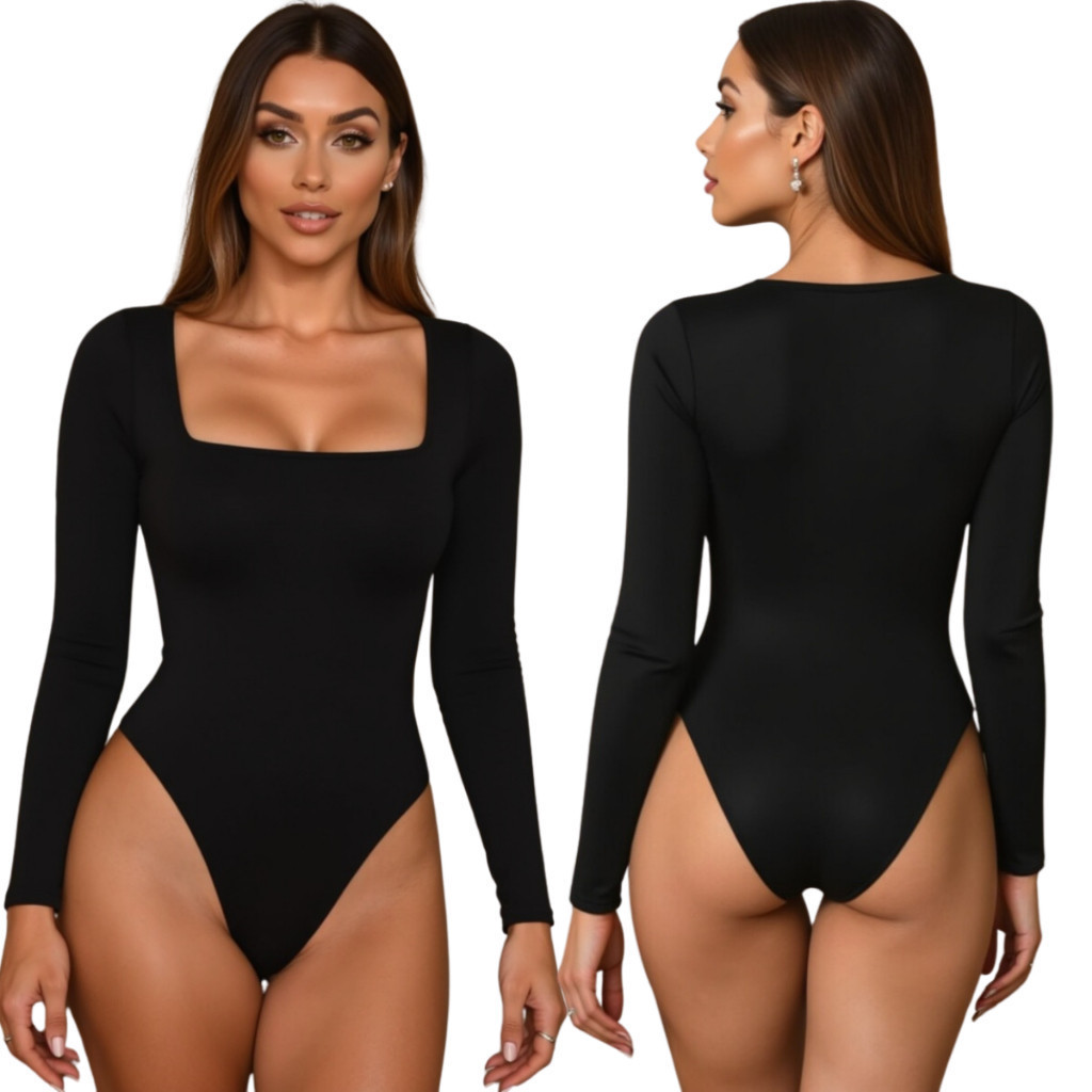 Kit 2 Body Feminino Decote Quadrado Manga Longa Suplex Forrado Segunda Pele Blusa Frio Premium