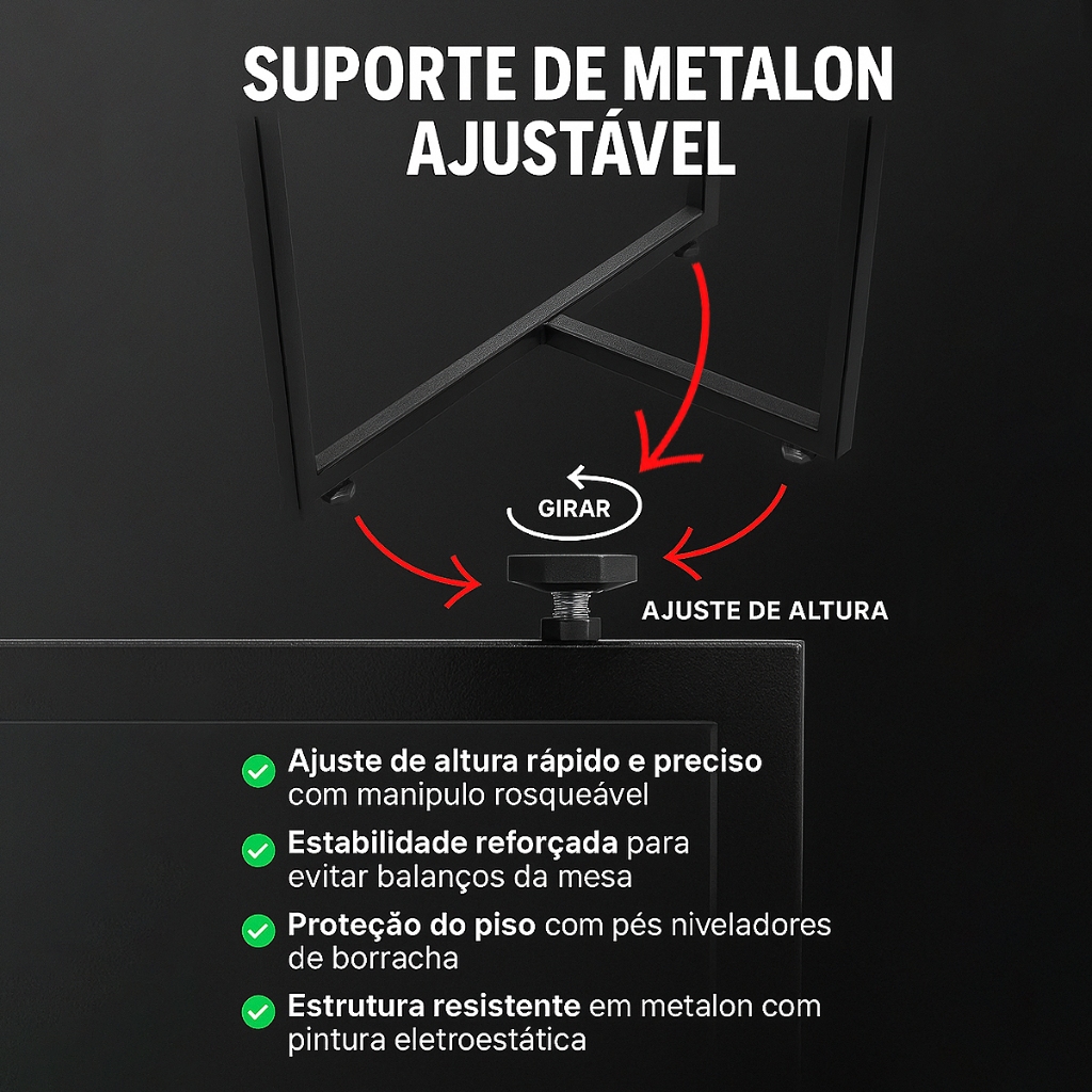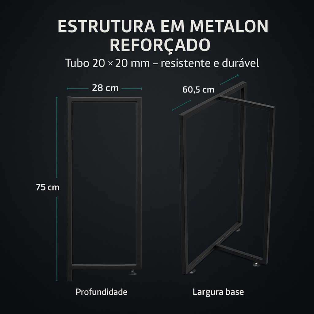 Pés de Mesa Modelo T Estilo Industrial Metalon - 2 peças 75x60cm Desmontável Com Nivelador