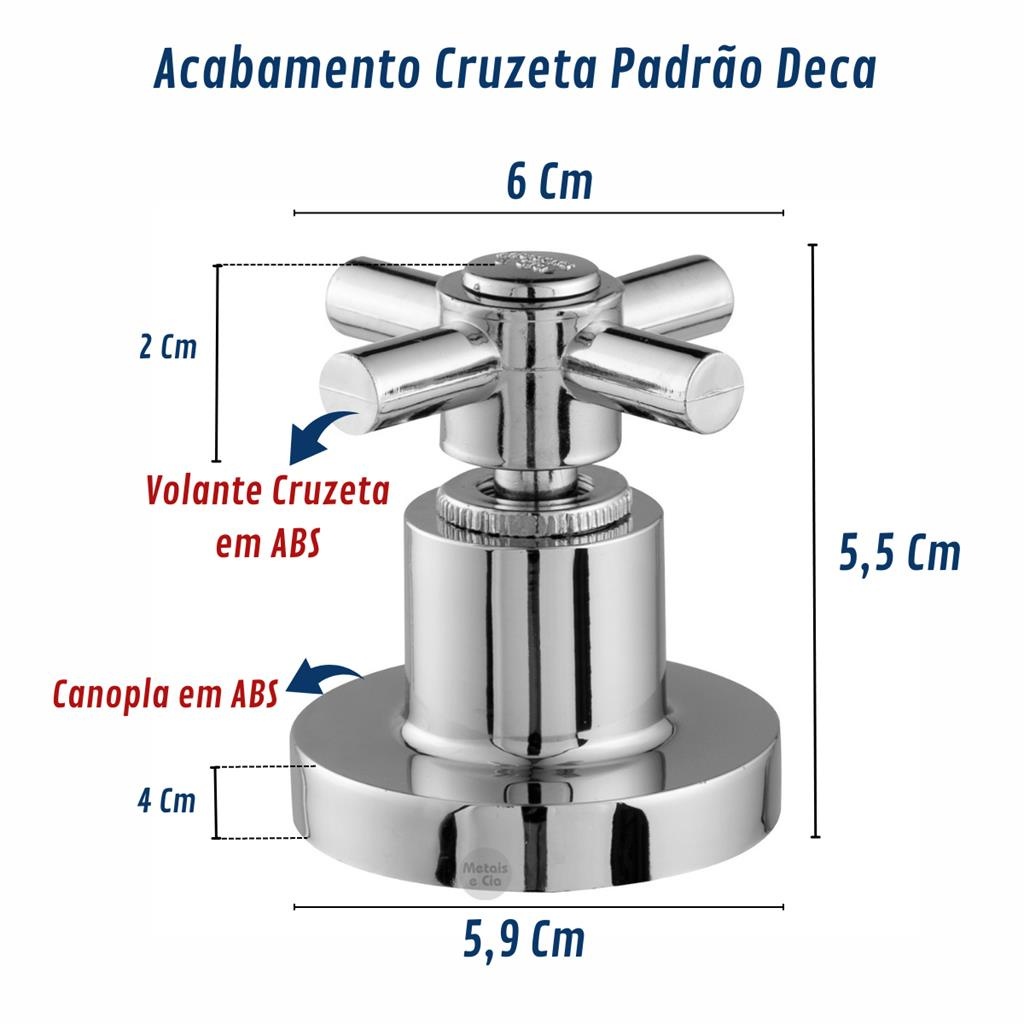 Acabamento Registro Cruzeta Cromado 1/2' a 3/4' e 1 Padrão Deca