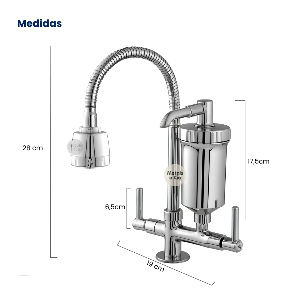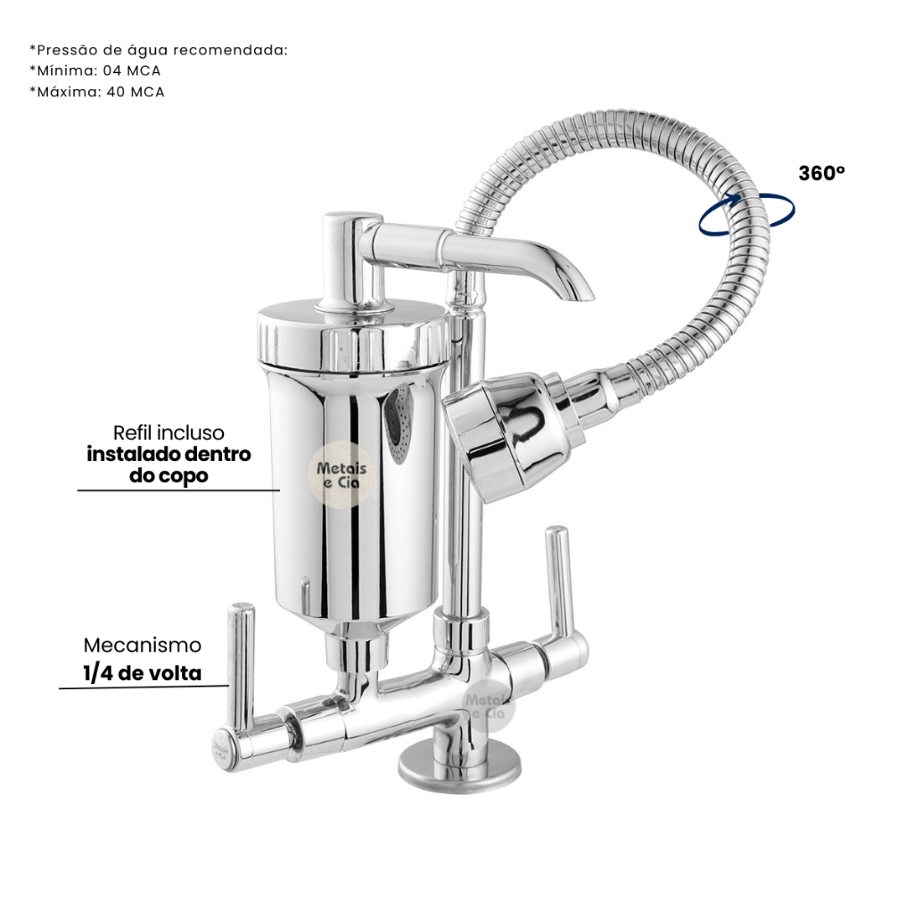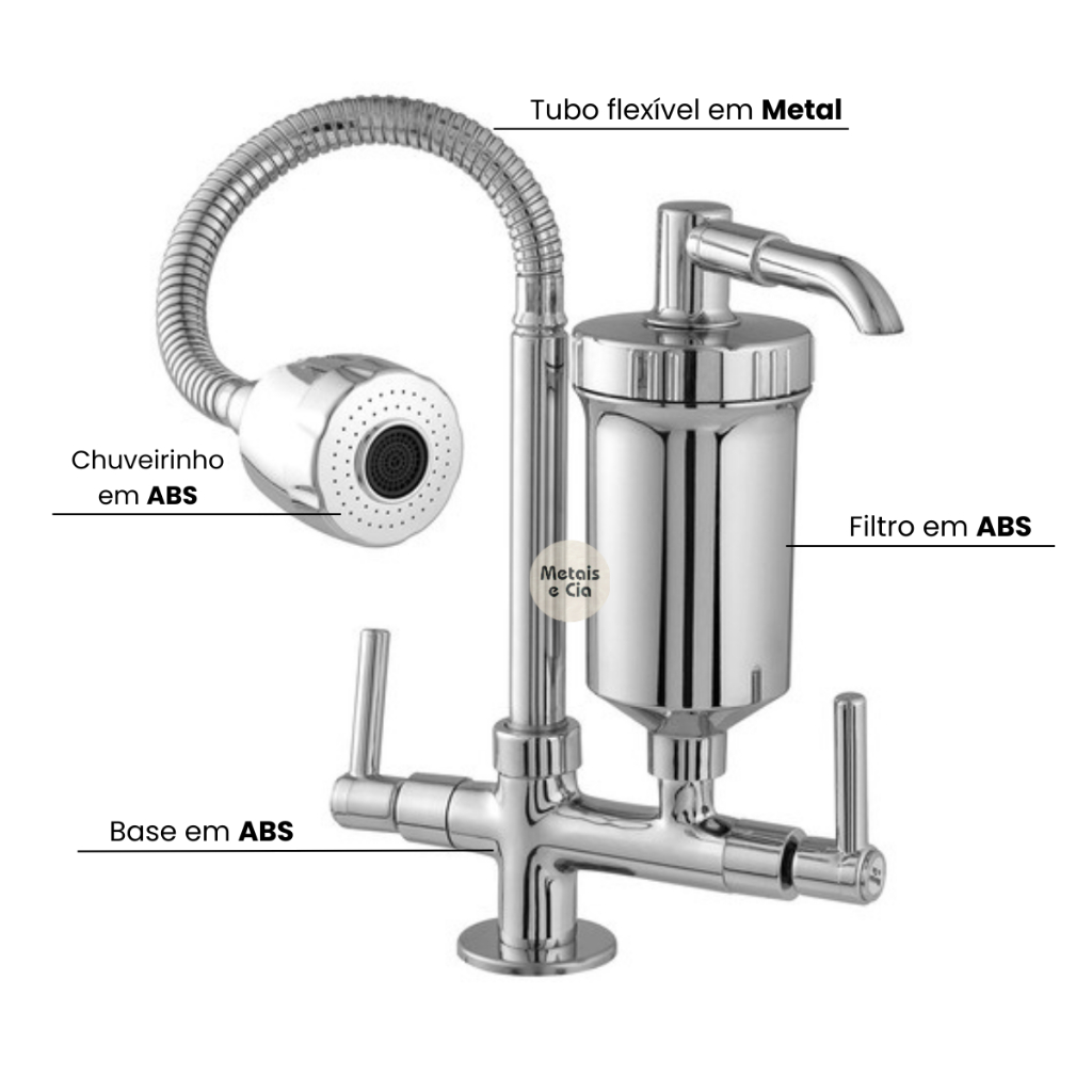 Torneira Gourmet Com Filtro Cozinha Bancada ABS 1/4 De Volta Cromada Cano Tubo Flexivel Chuveirinho 2 Jatos Duplo Refil