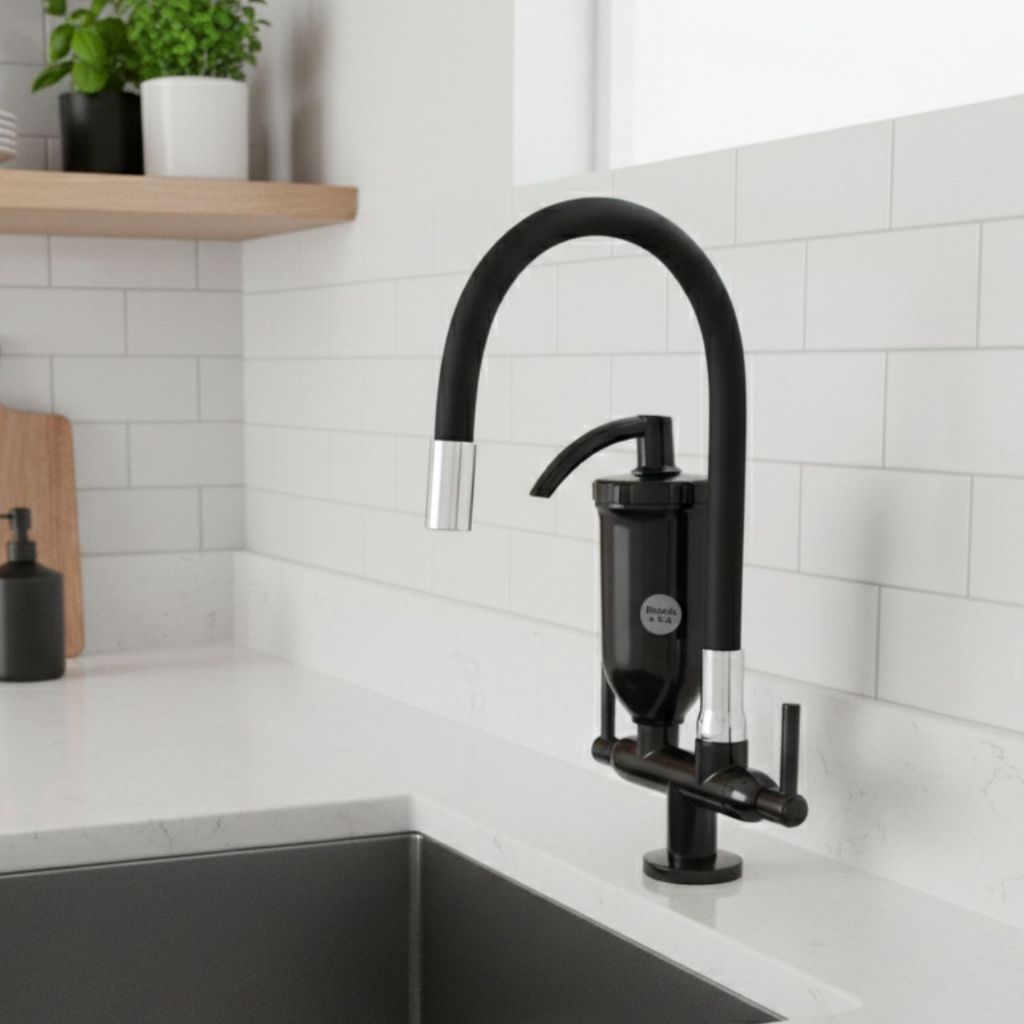 Torneira Cozinha Parede com Filtro e Tubo Silicone Flexível Preto 1/4 de Volta