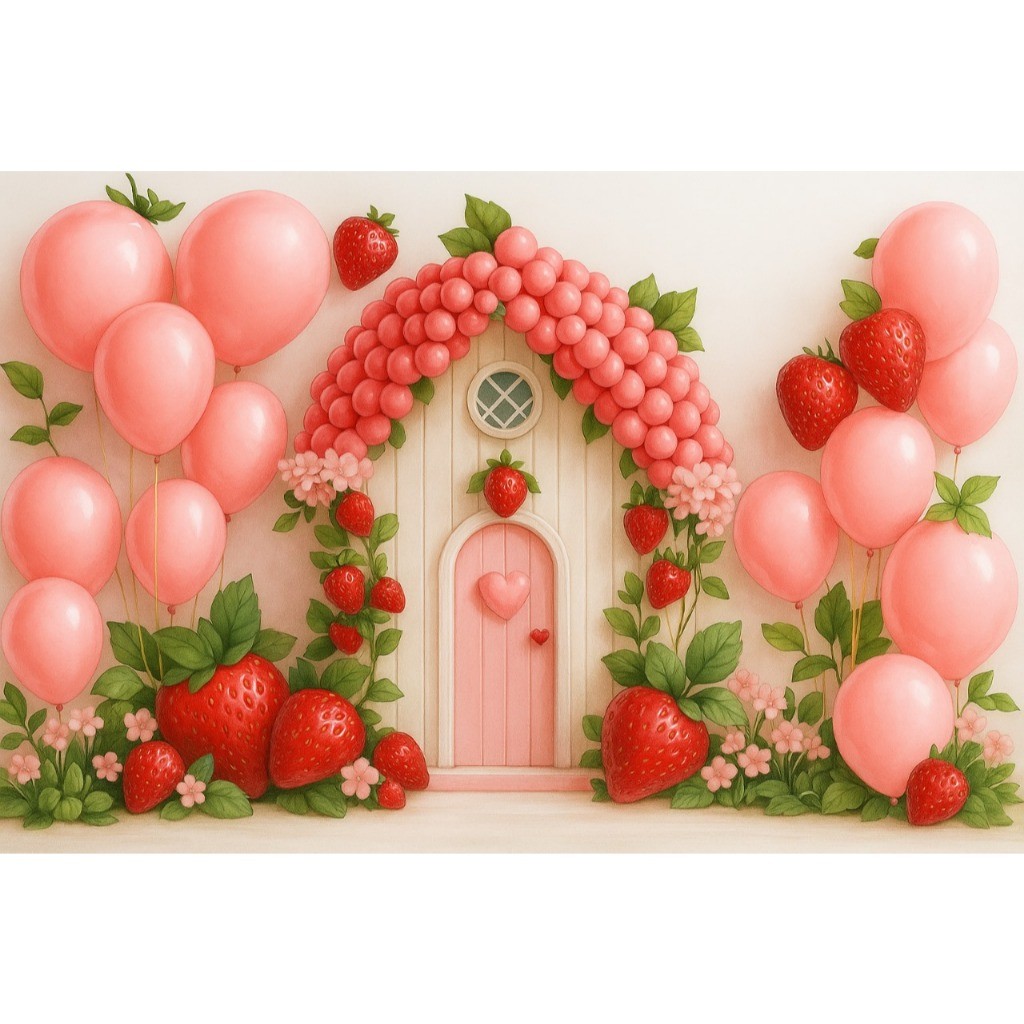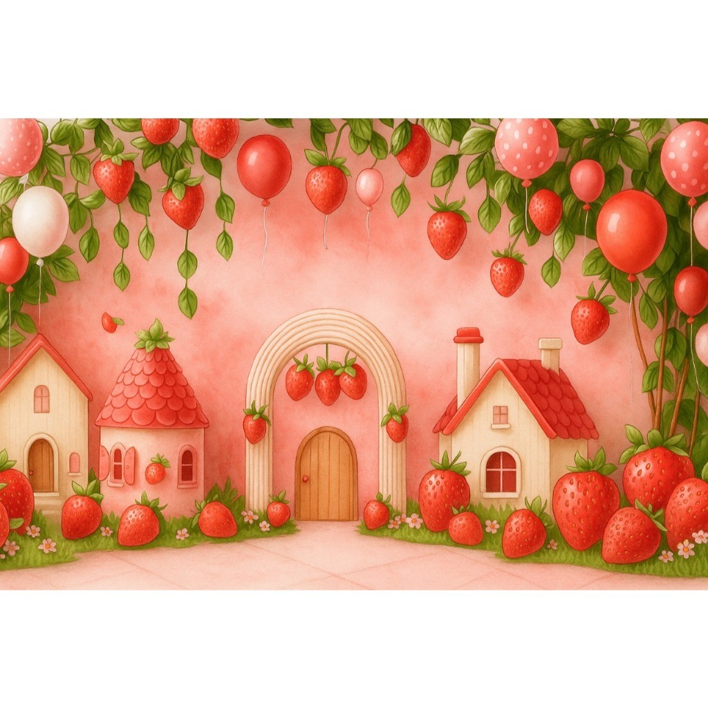 Fundo Fotográfico Tecido Sublimado 3D Newborn Morangos 2,20x1,50