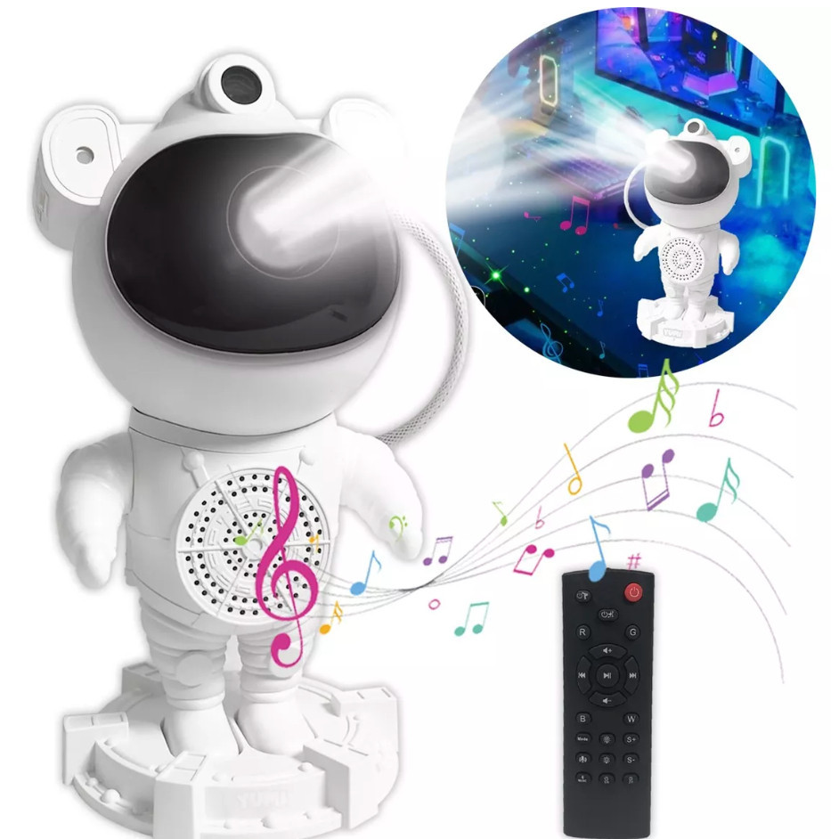 Projetor astronauta, galáxia, estrelas, lua, com alto-falante bluetooth.