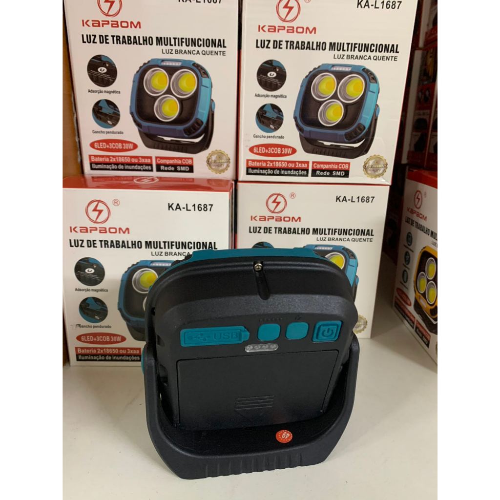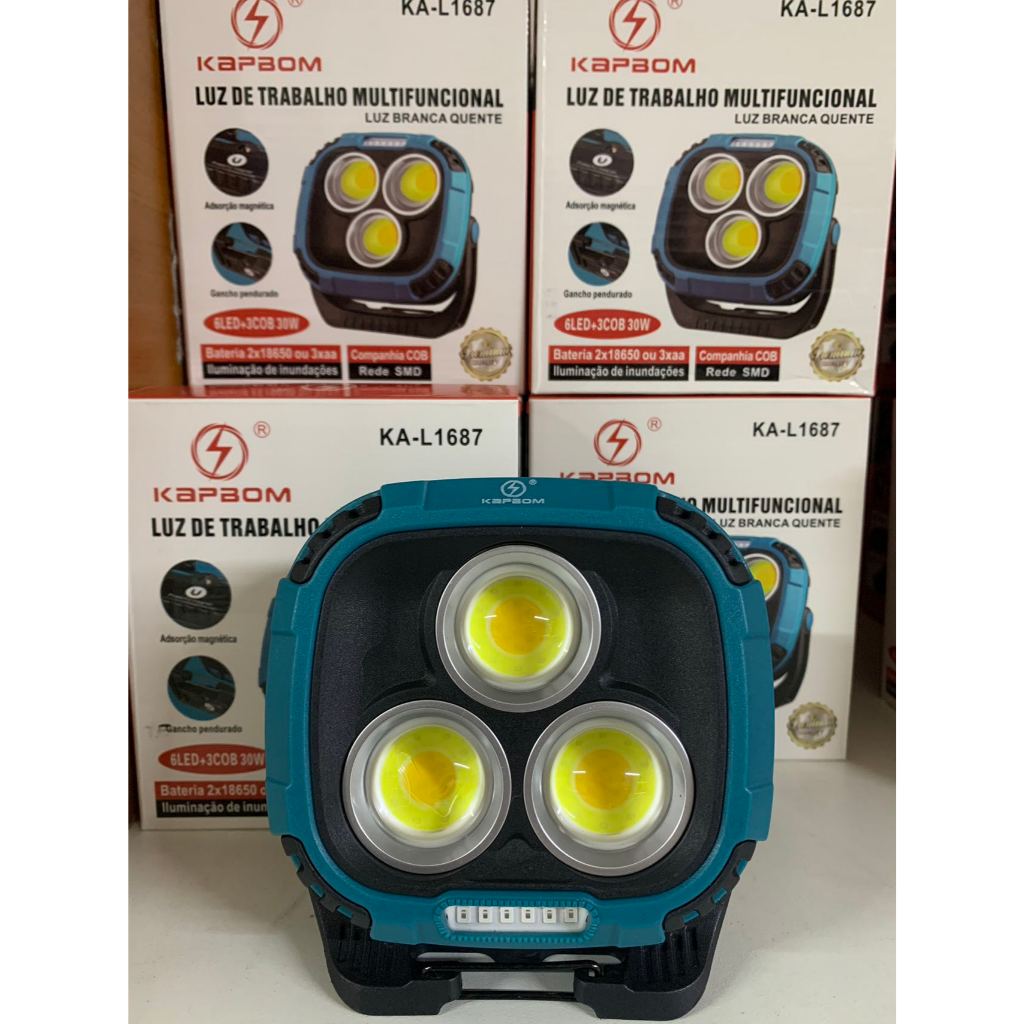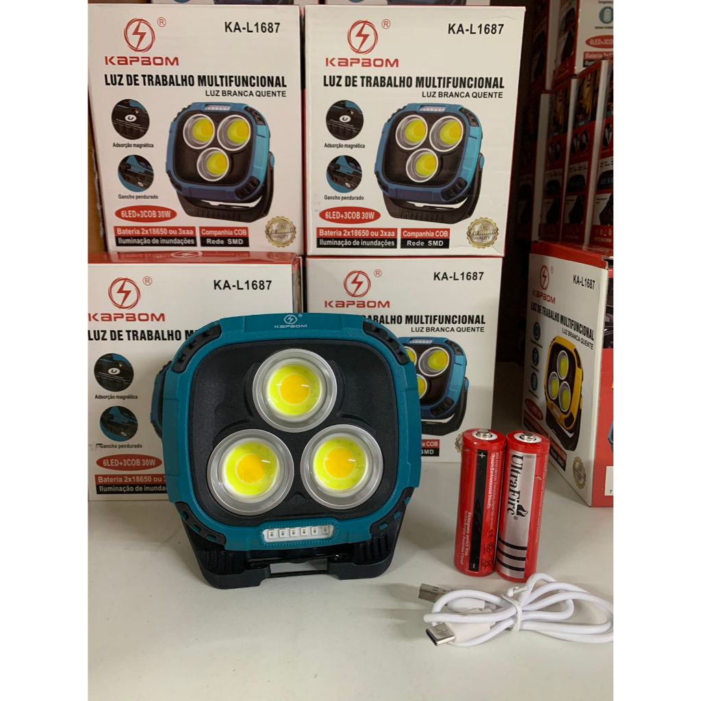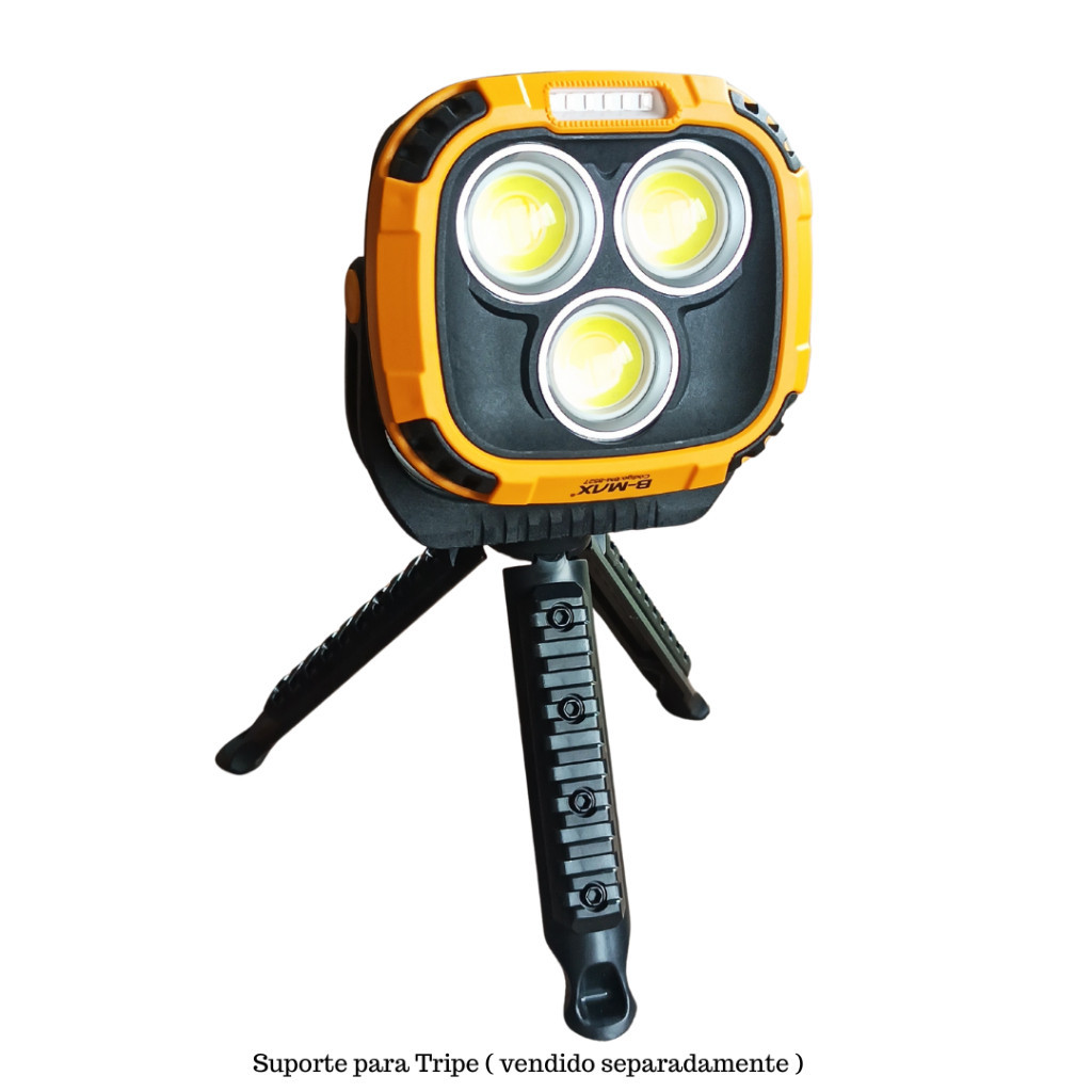 Lanterna Refletor Led Recarregável 30w 3 Cor Led Portátil